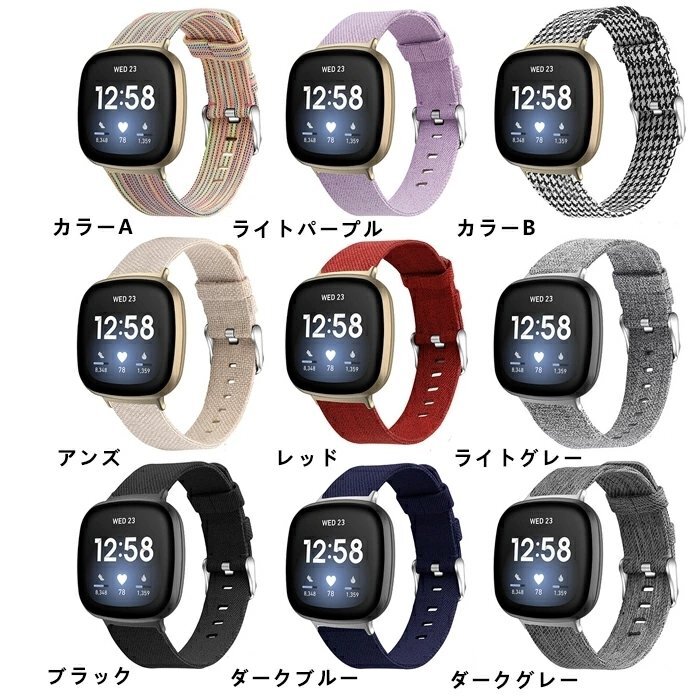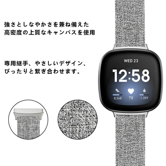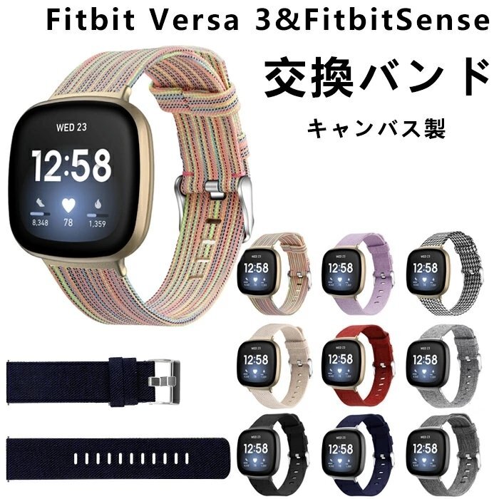Fitbit Versa3 対応 バンド Fitbit Sense バンド versa 3 バンド ベルト キャンバス 交換ベルト versa3 交換バンド【カラーB/サイズS】