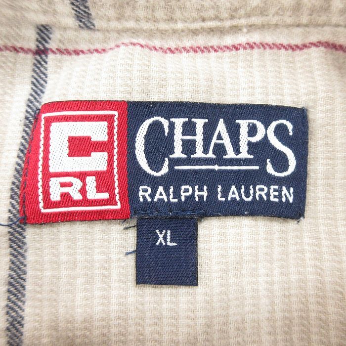 【商品名】 XL★古着 ラルフローレン チャップス 長袖 ブランド フランネル シャツ メンズ 90年代 90s 大きいサイズ コットン ボタンダウン 薄ベージュ チェック