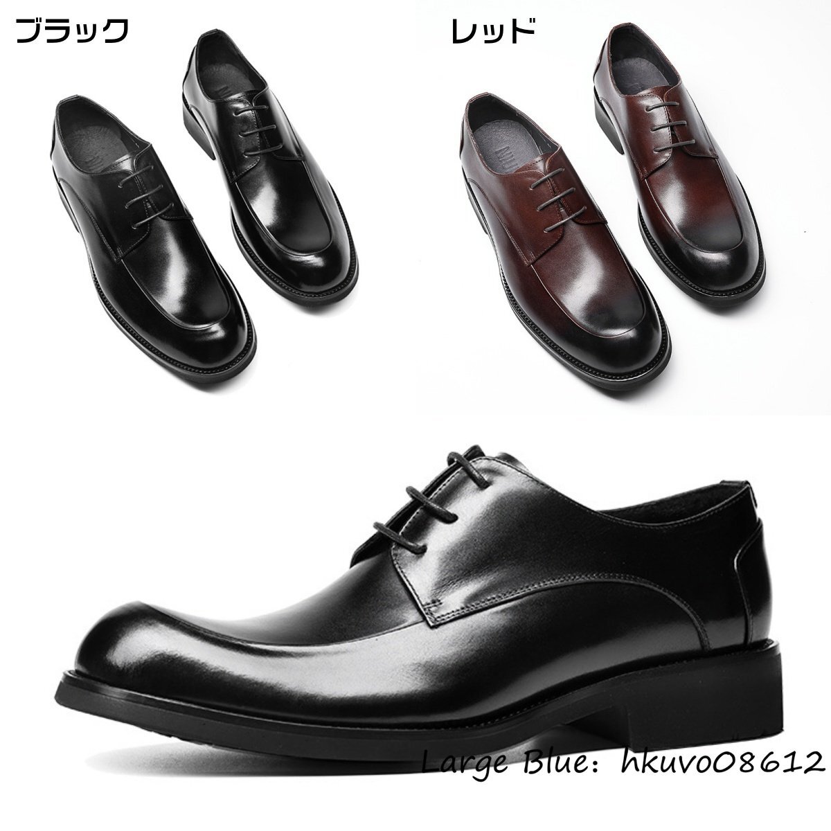 定価11万■最高級 上級牛革 レザーシューズ 職人手塗り上げ 本革 ビジネスシューズ 革靴 紳士靴 シークレット ドレス 結婚式 レッド 24.5cm