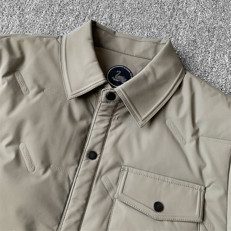 5518-3XLカーキ ダウンジャケット メンズ 折り襟 新品DCKMANY 防寒 冬服 アウター スナップボタン ジャケット キルティング ゴルフウェア