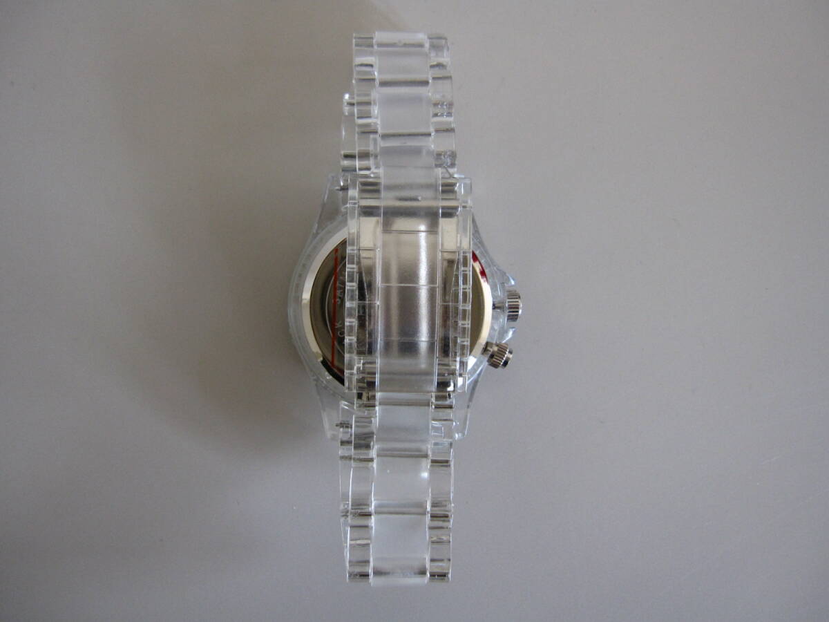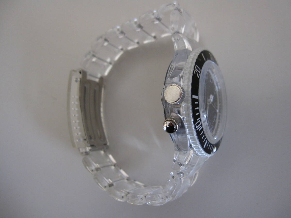 ・商品の説明 | 文字盤がブラックで周囲やベルト部分が透明の、クールでシンプルなデザインです♪ |