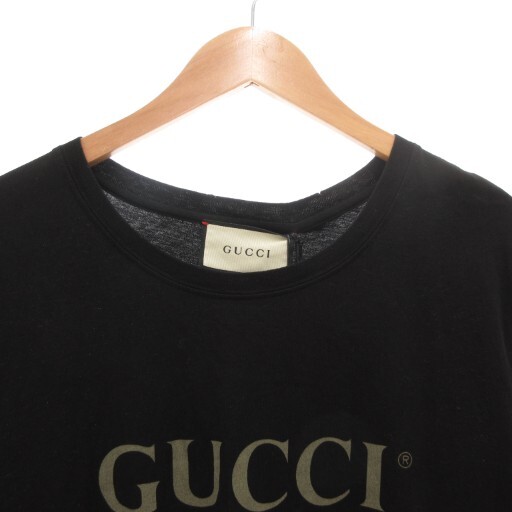 未使用品 グッチ GUCCI タグ付き GUCCI ロゴ ウォッシュドオーバーサイズ Tシャツ 半袖 シェリーライン XS 黒 ブラック 440103 X3F05