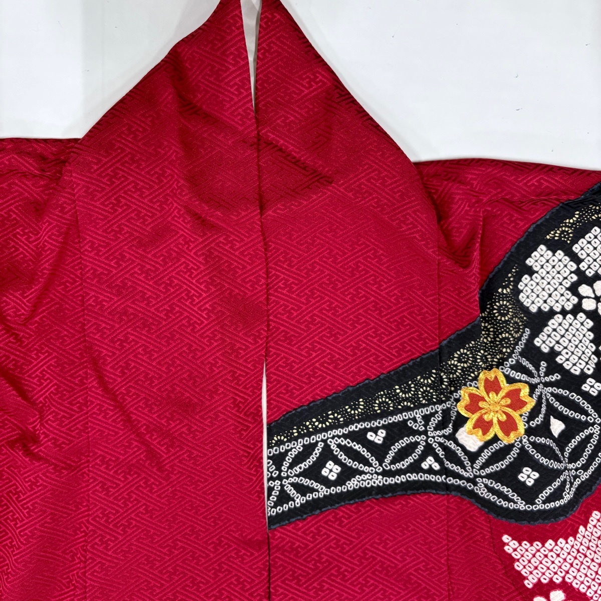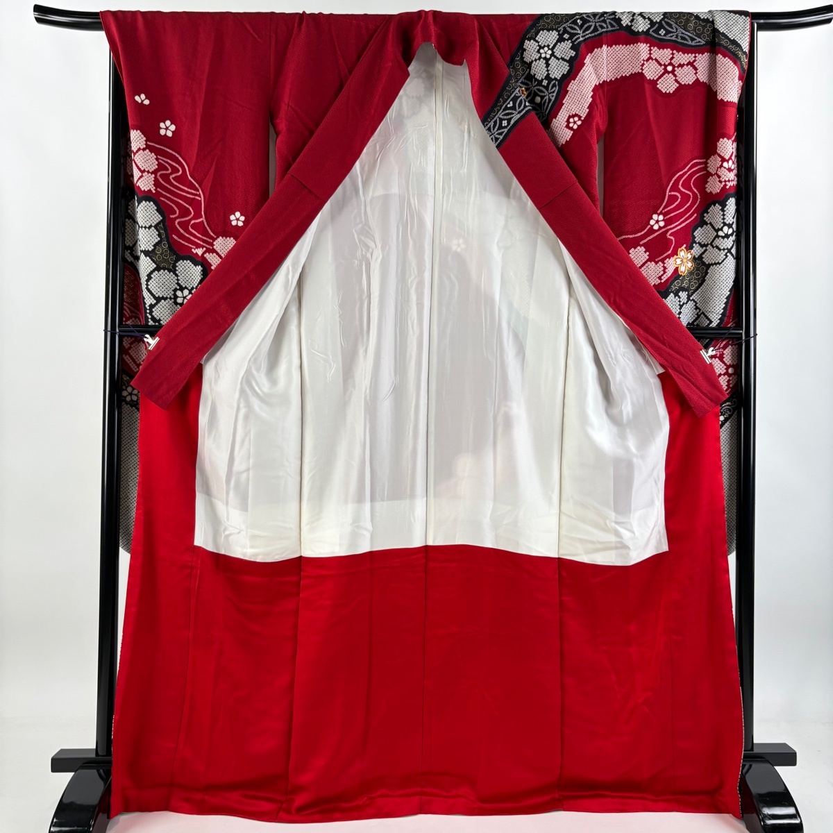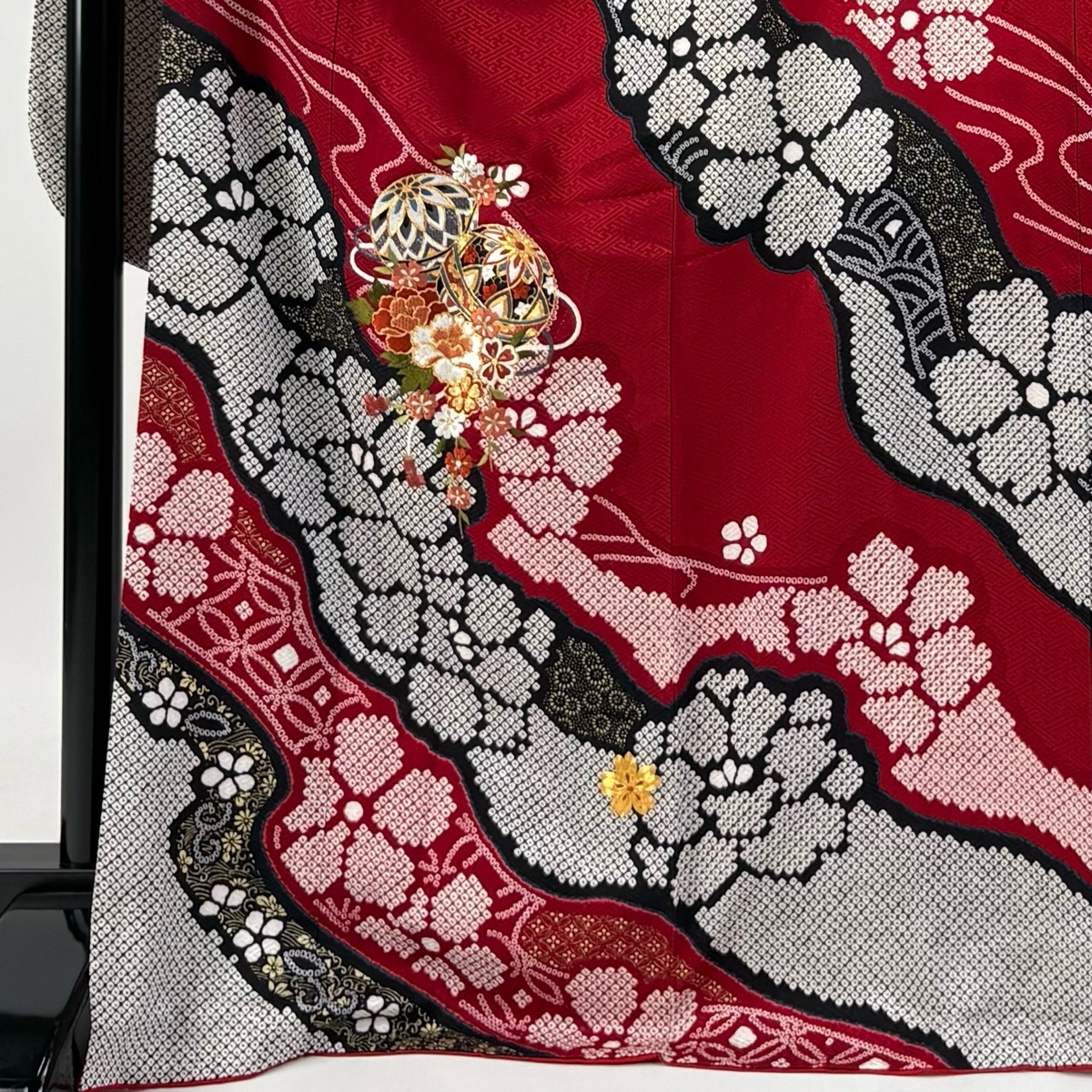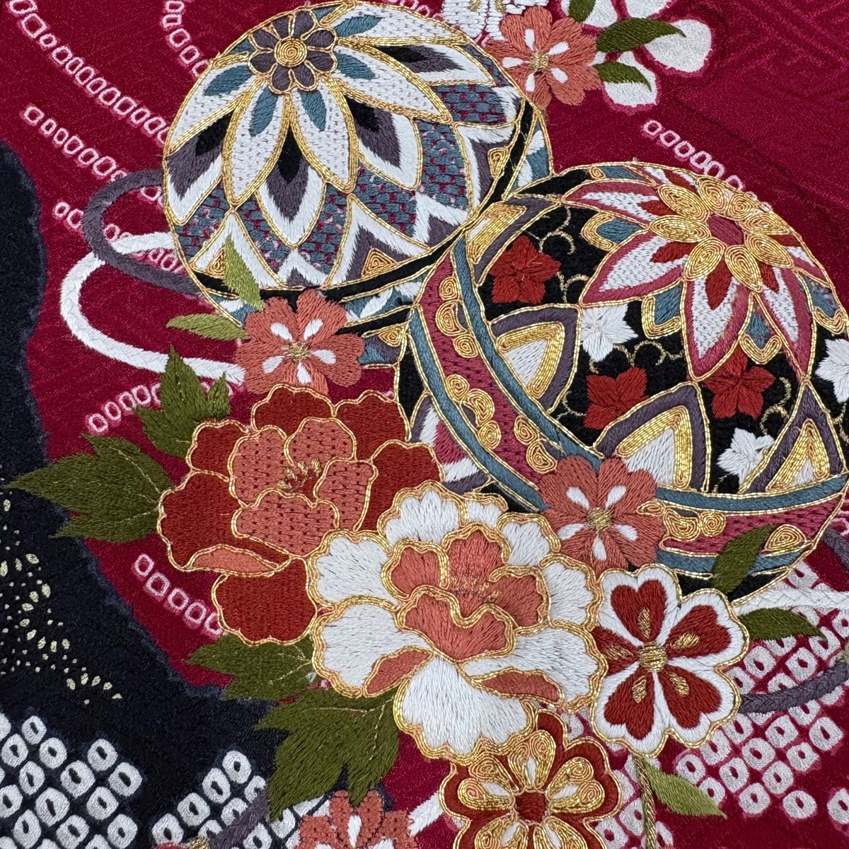 振袖 秀品 手鞠 草花 金糸 刺繍 赤 袷 身丈170 裄丈69.5 L 正絹 【中古】 |