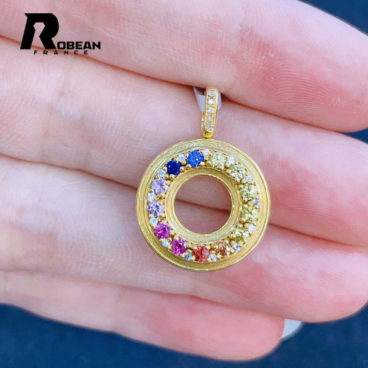 夢色 EU製 定価87万円★ROBEAN・ファンシーカラーサファイア&ダイヤモンド★ペンダント 天然石 綺麗 華やか ギフト K18(18金)00064114