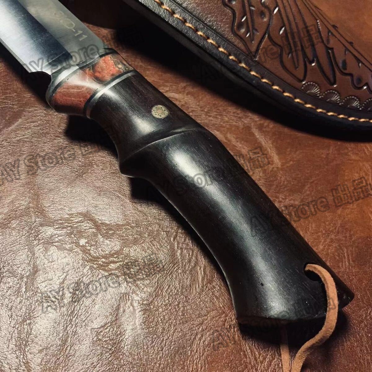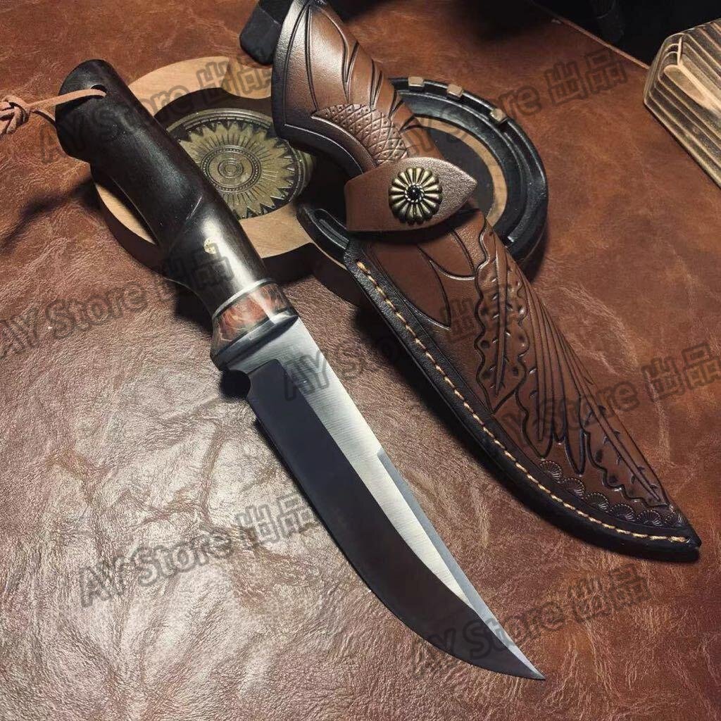 刃厚5mm 超高品質 アウトドアナイフ 包丁 SKD11鋼製 薪割り 革製シース付き キャンプ 釣り ハイキング 野外 登山 bhw0283