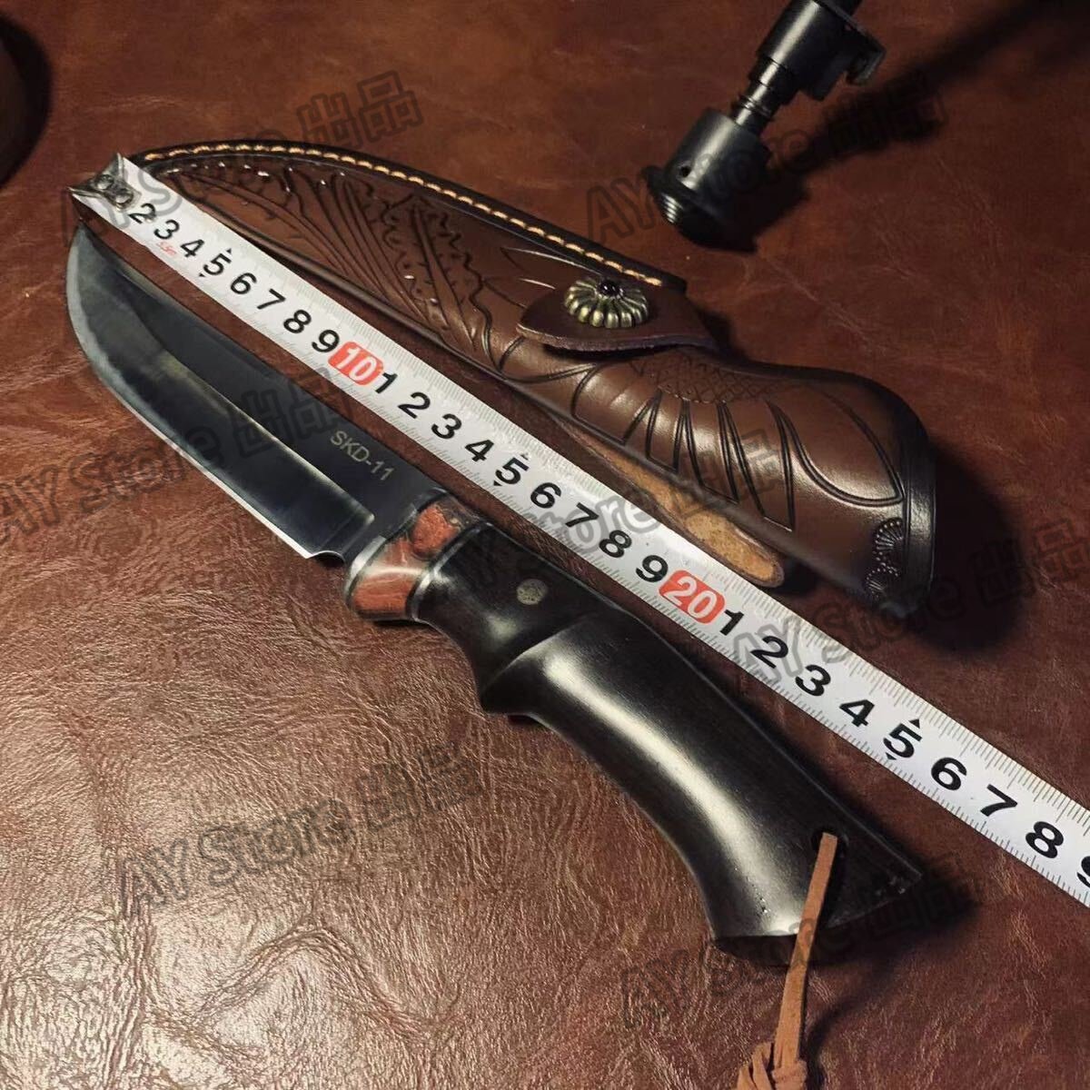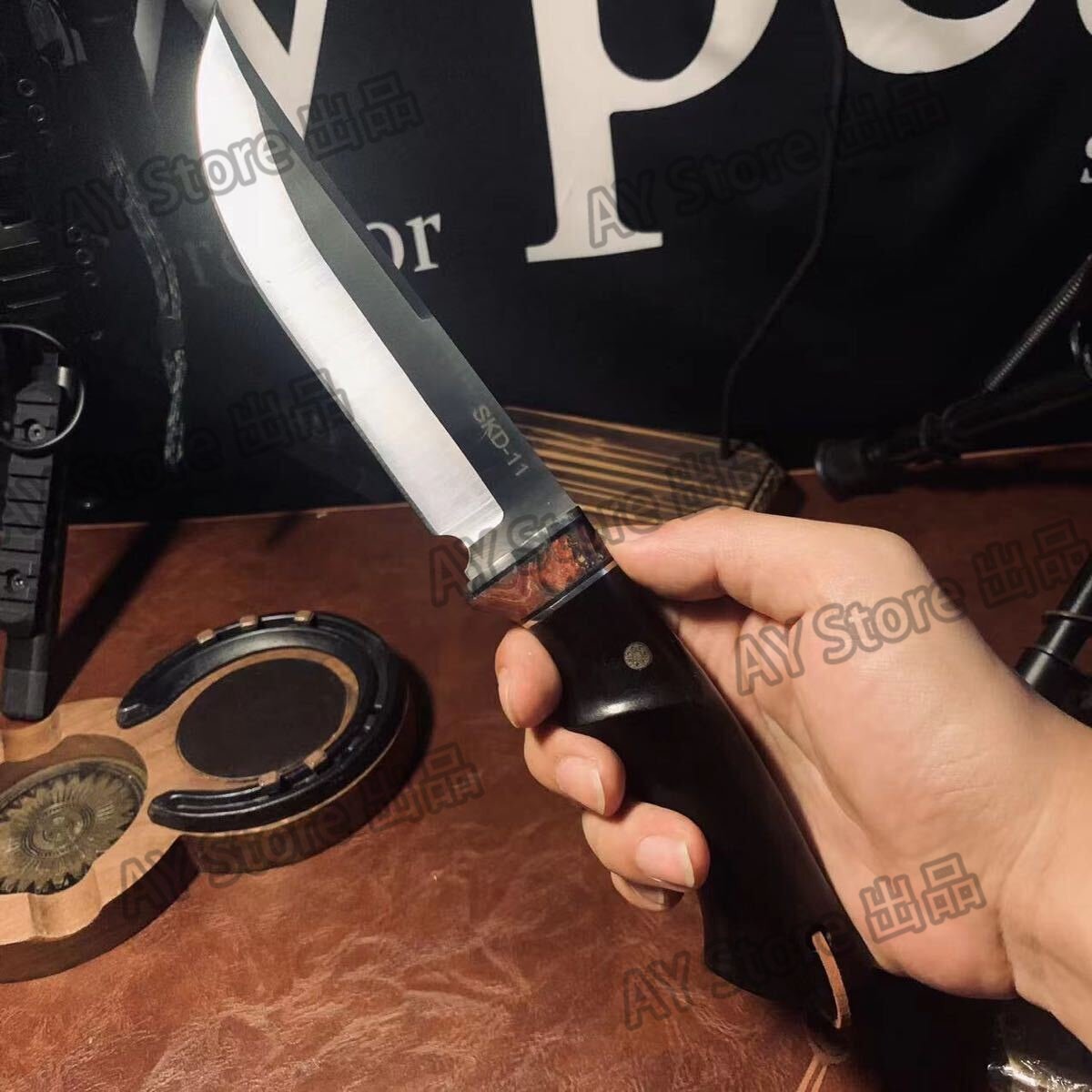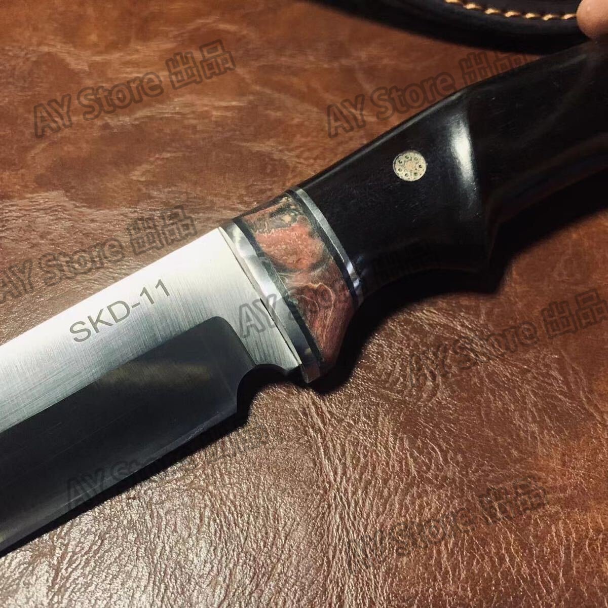 刃厚5mm 超高品質 アウトドアナイフ 包丁 SKD11鋼製 薪割り 革製シース付き キャンプ 釣り ハイキング 野外登山