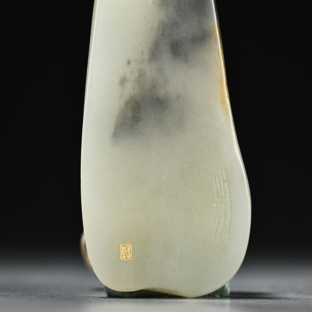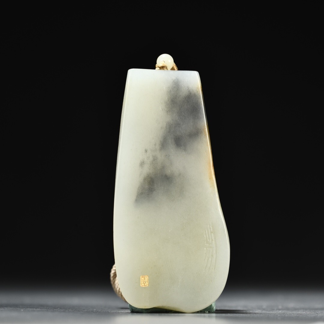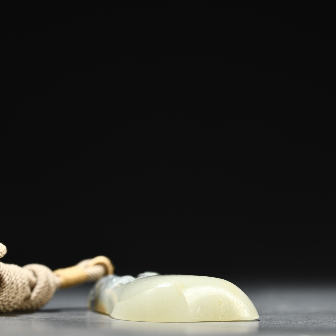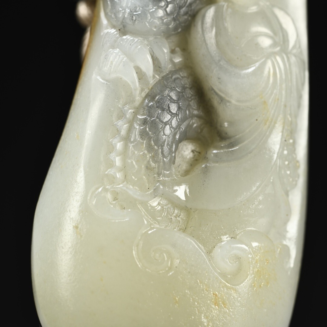 【瓏】和田玉 青花子料彫 御龍観音 掛件 清時代 極細工 手彫り 置物 裝身具 賞物 中国古美術 蔵出