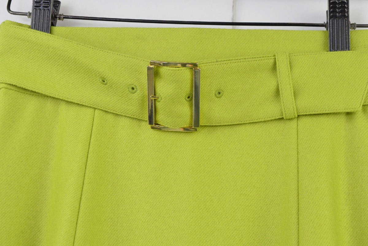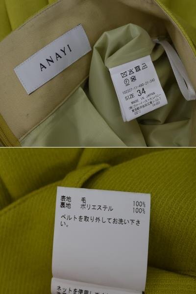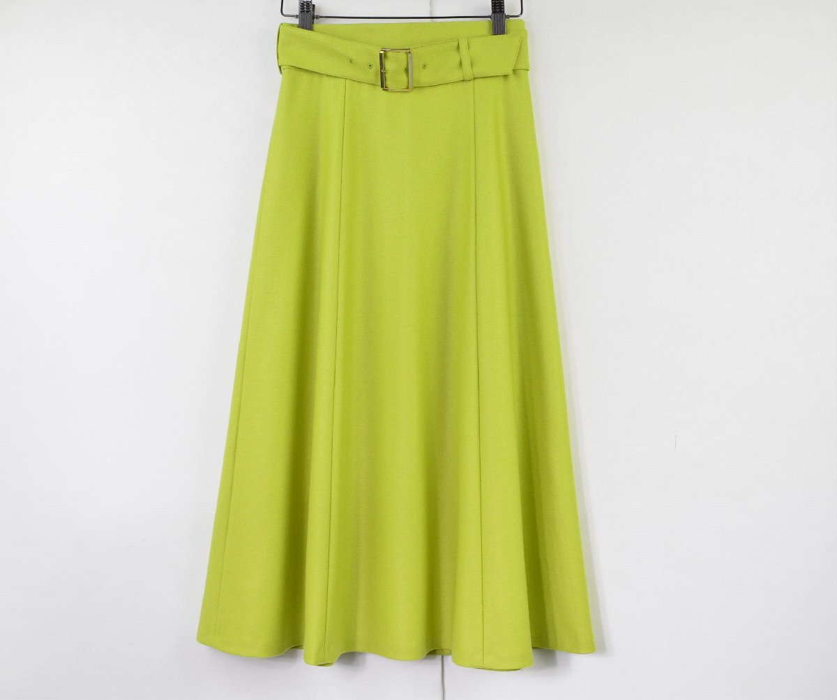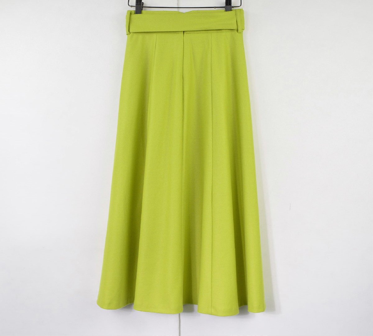 5000-GA00080★ANAYI アナイ 美品★秋冬 ウール素材ツイルジャージ フレア ロングスカート ベルト付き 34 アップルグリーン