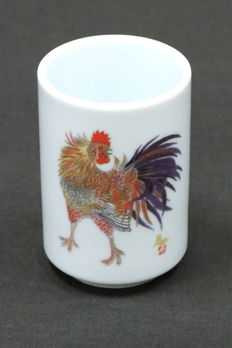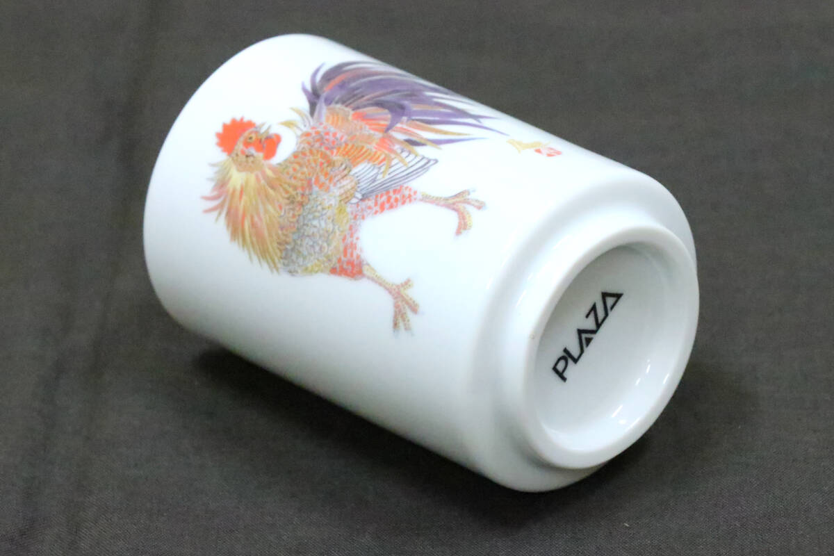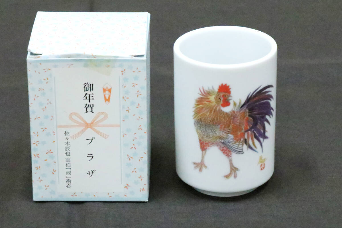 佐々木辰也 画伯「酉」湯呑 直径6.5㎝、高さ10㎝ PLAZA トリ 食器 未使用 【商品説明必読】
