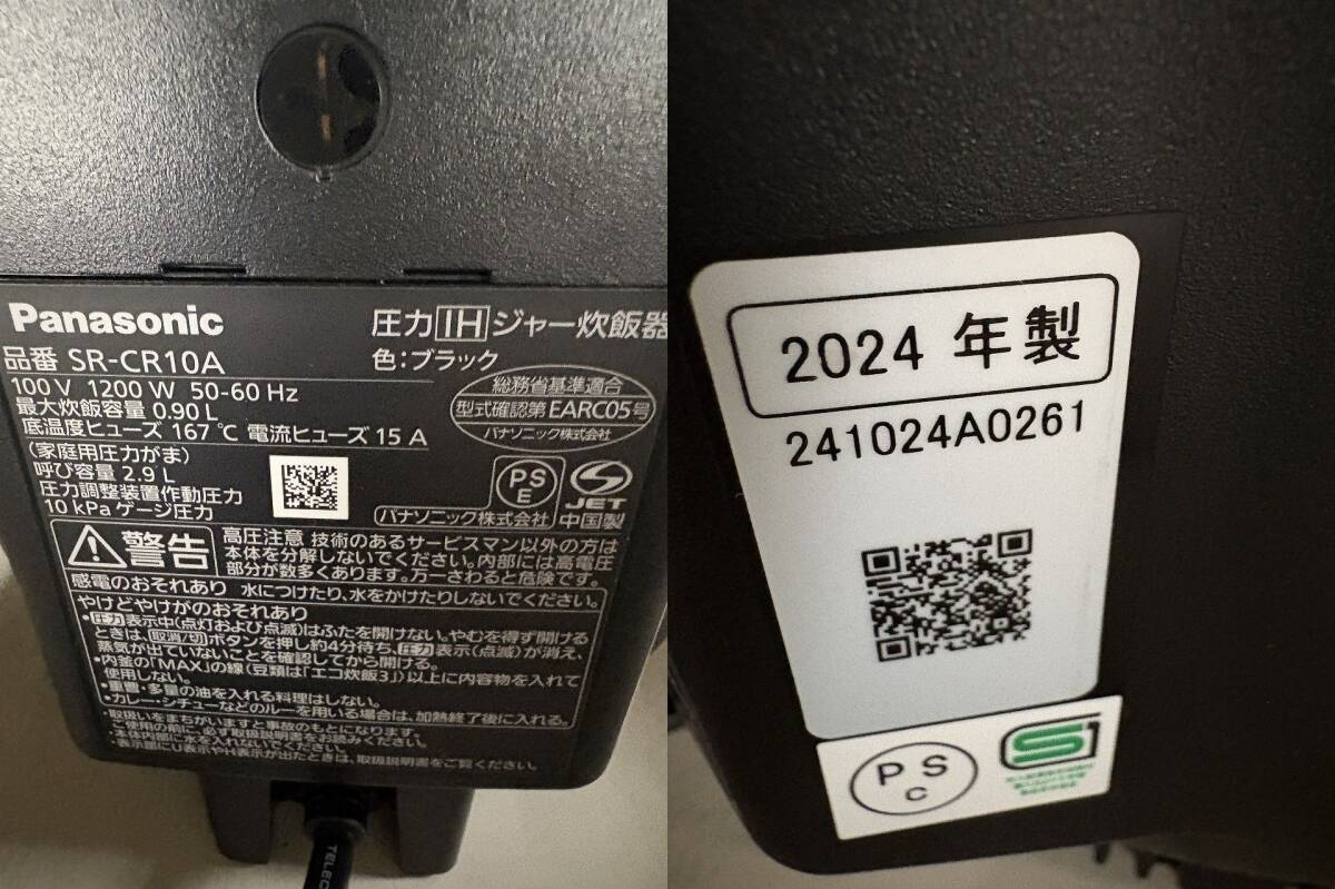 K-912 2024年製★Panasonic★圧力IHジャー炊飯器 SR-CR10A 5合炊き 中古美品