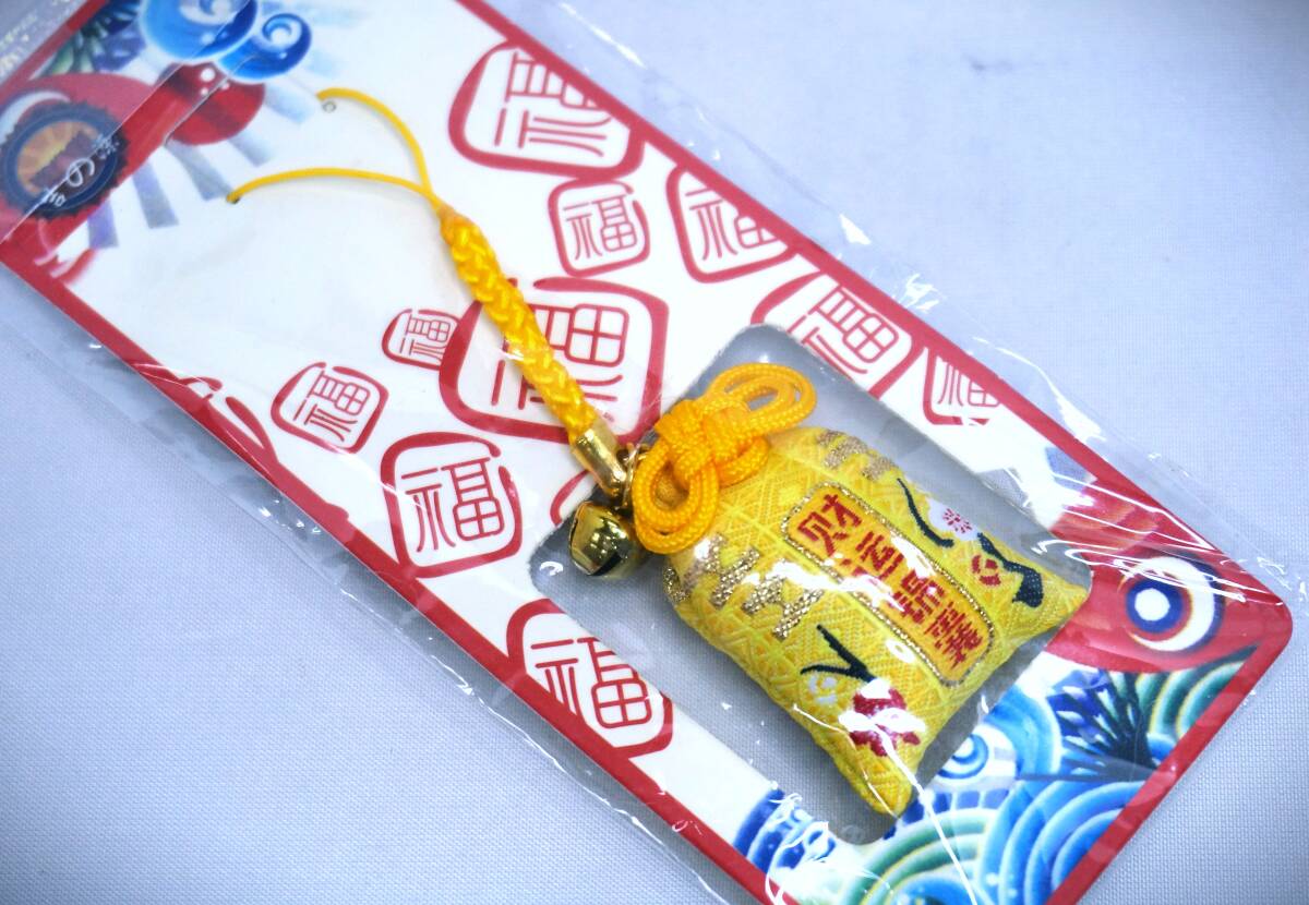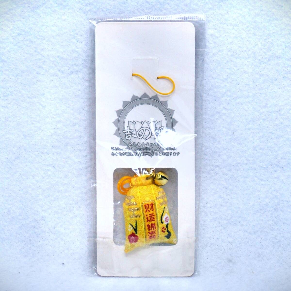 財布を模したような小さな巾着袋に、「金運」と「吉」の文字が書かれた、非常に縁起の良いアイテムです。