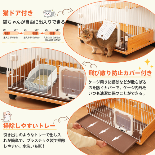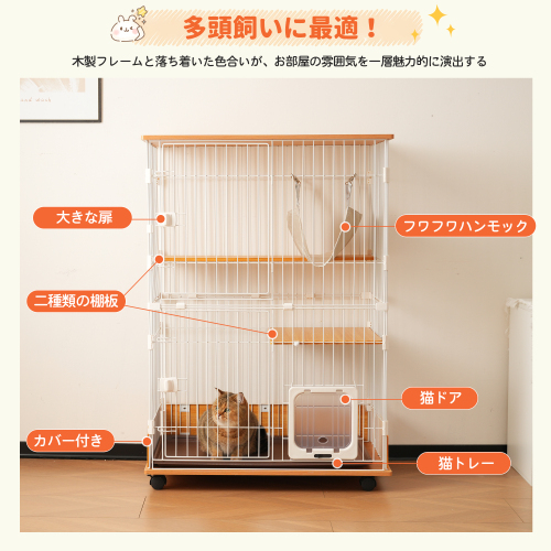 • 【無垢材フレームでもっとしっかり、猫ちゃんの安全を守って、飼い主も安心です】フレームは天然の欅の木を採用、優しい風合いでインテリアに調和します。一般の猫ケージが発生可能な揺れるや崩れることの問題を解決し、全体がもっと安定してしっかりしています。