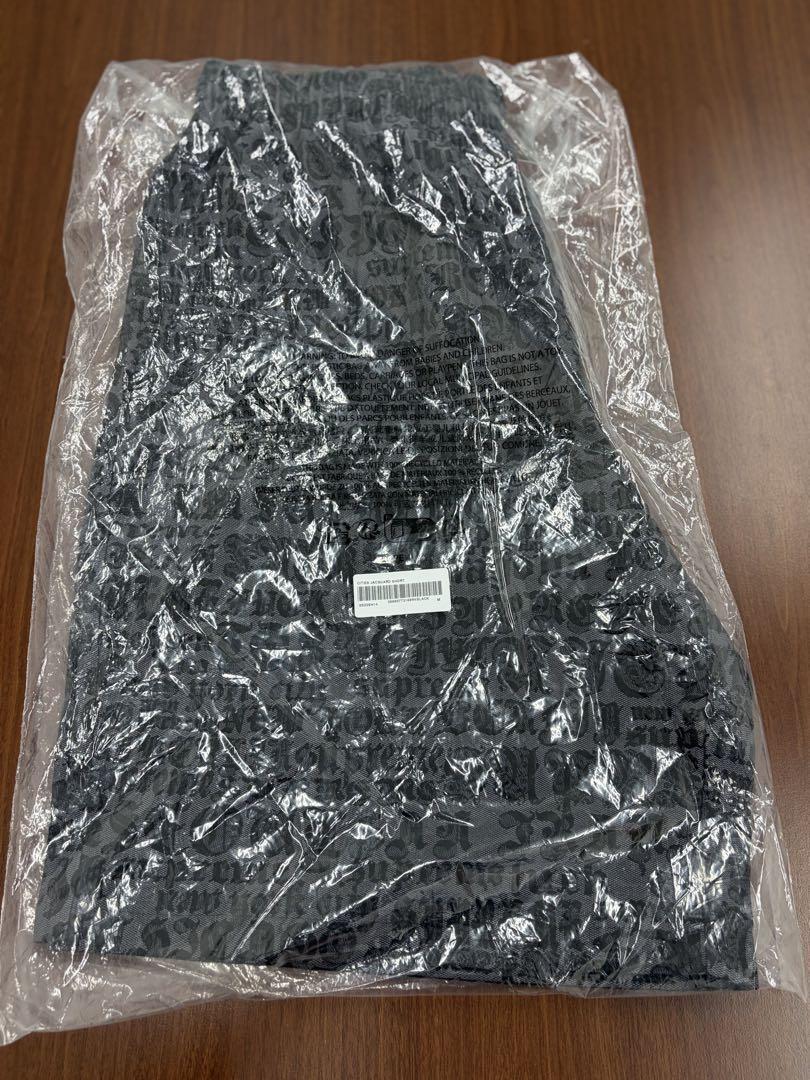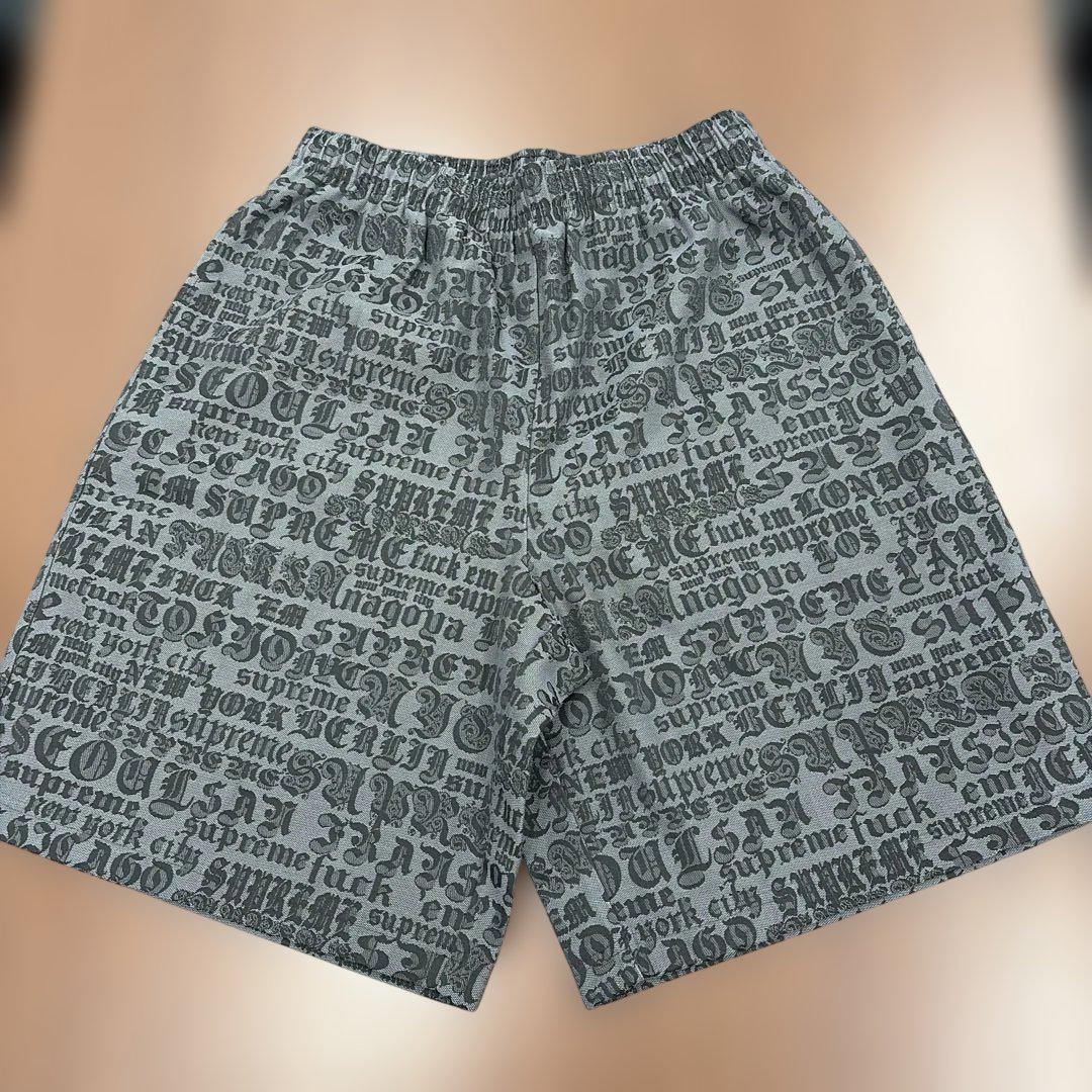 未使用 新品 グレーの文字プリントが特徴のSupremeのショートパンツ、サイズMedium。