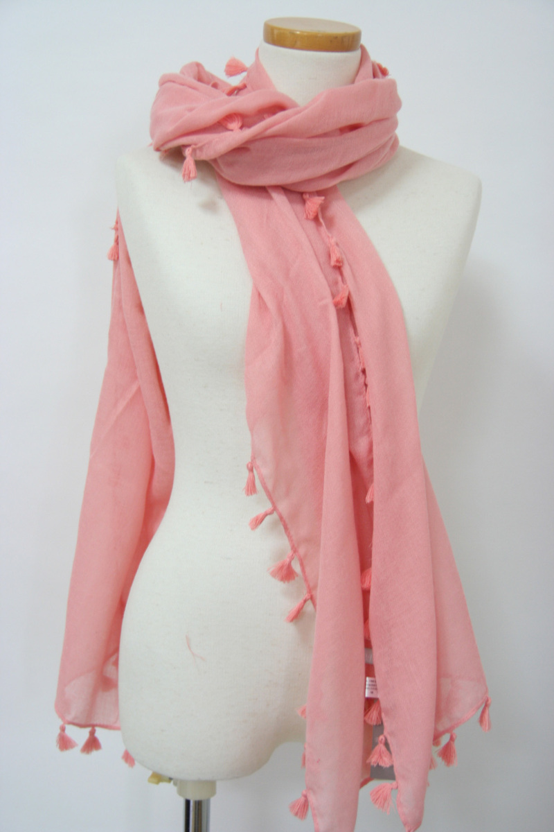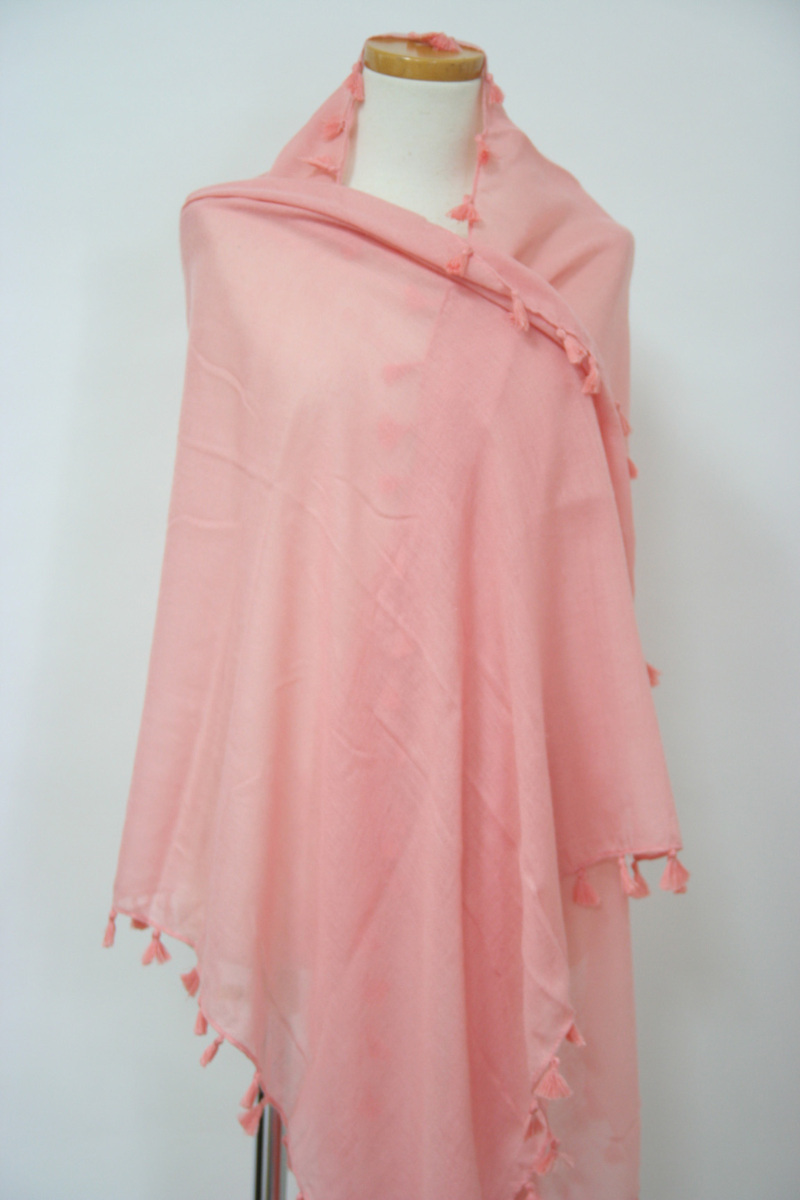 送料無料◆通年タイプ◆プレーンカラー◆日焼け&紫外線対策◆お洒落アイテム◆ショール◆タッセル付き◆大判ストール(ライトピンク)176008