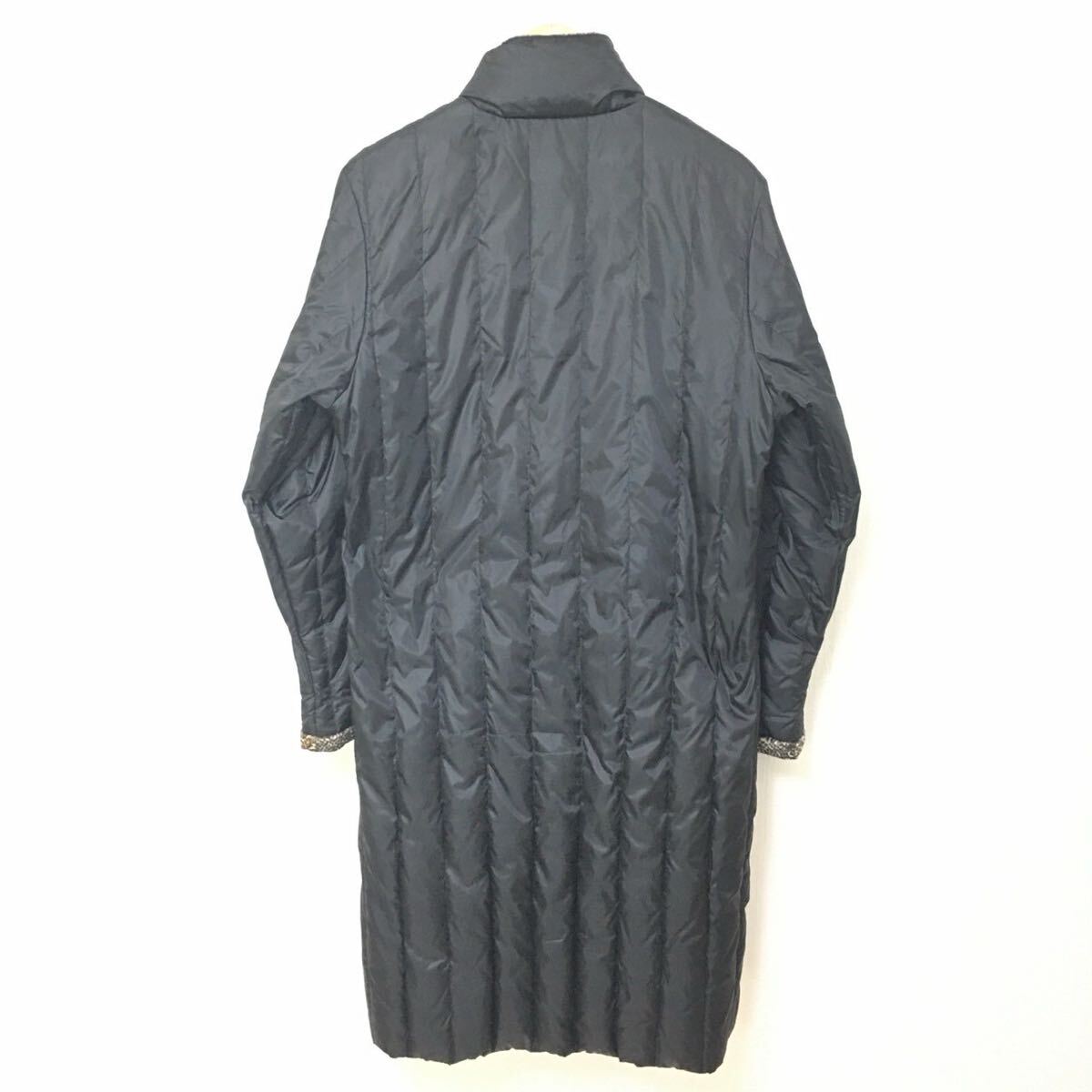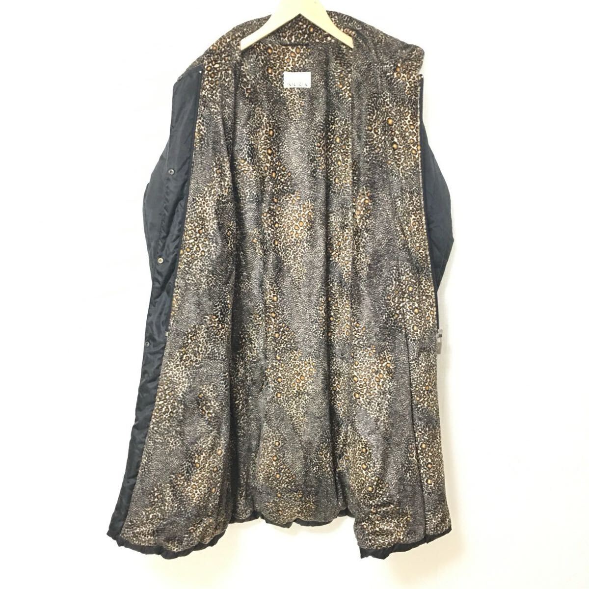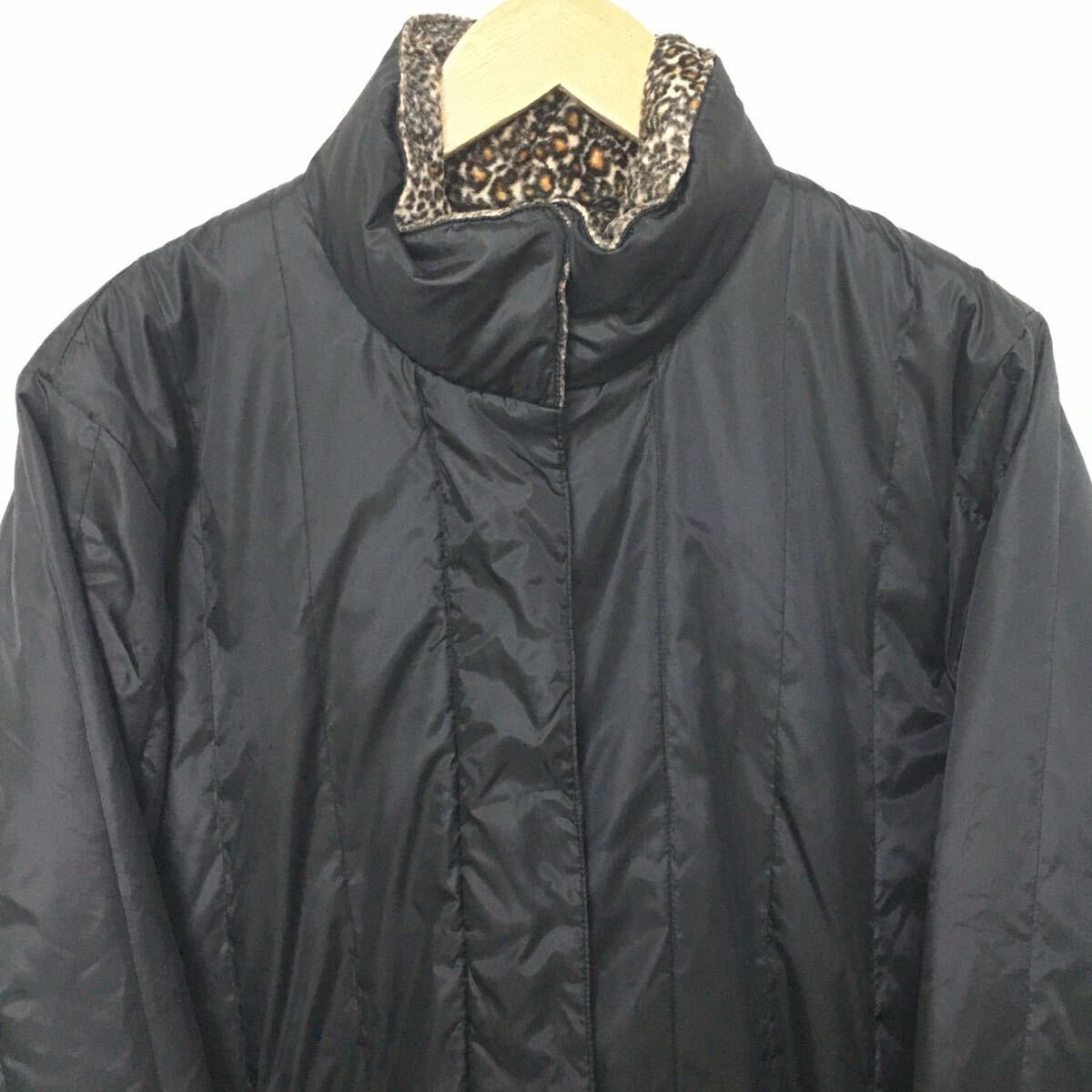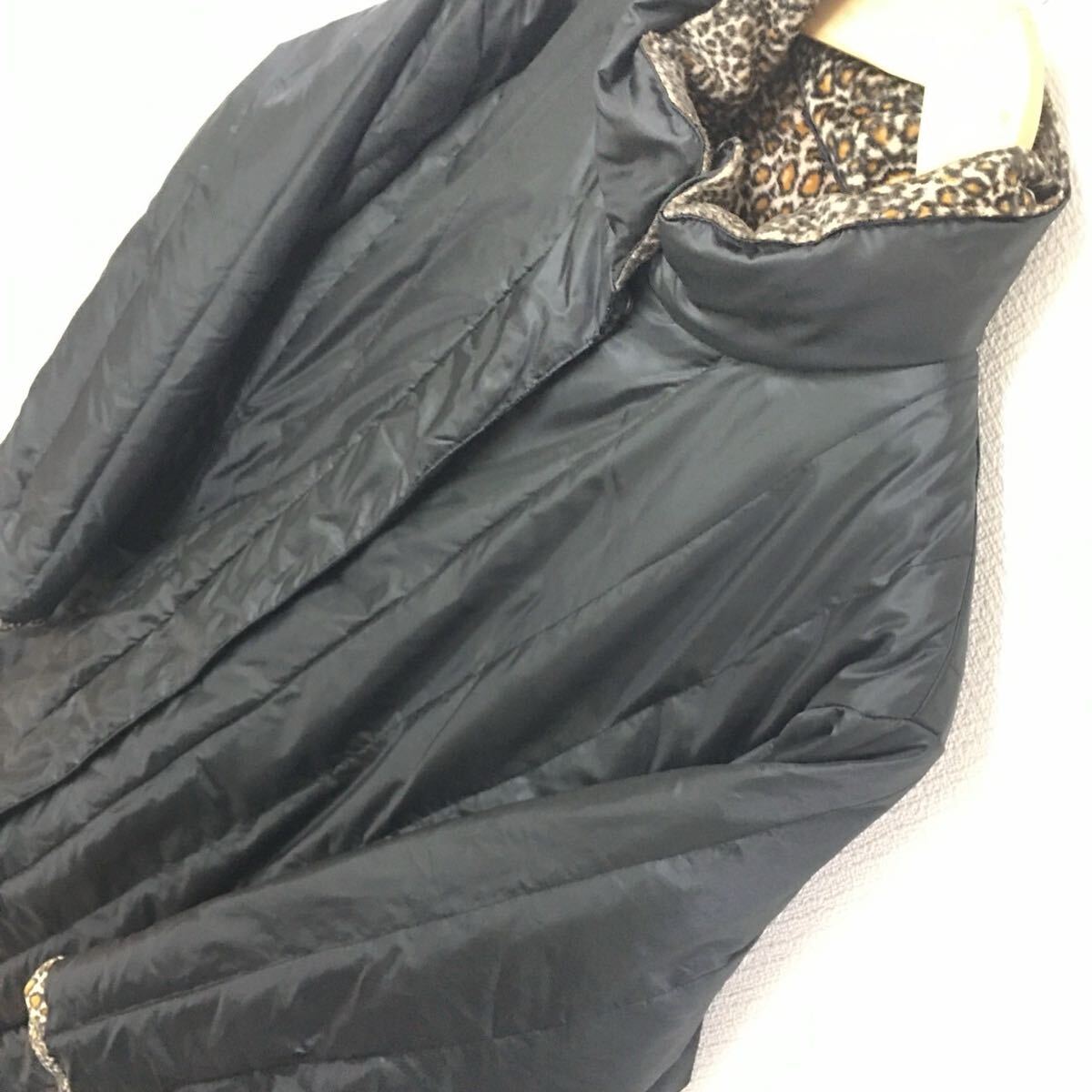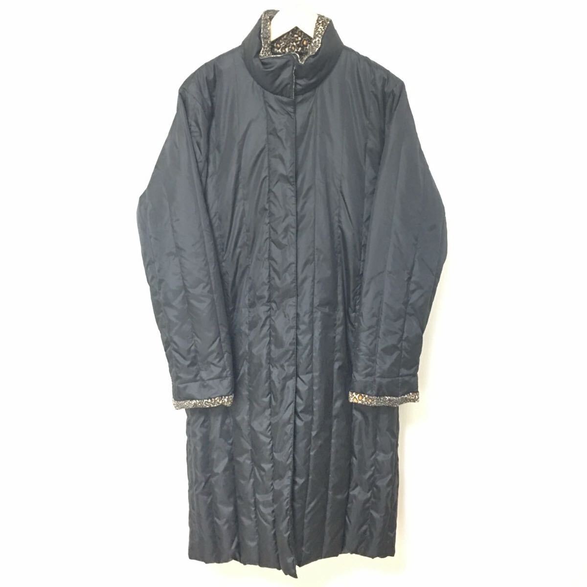 W332【KRIZIA】クリツィア ダウンコート アウター ロング 裏地ヒョウ柄 フェザー 高級 軽量 エレガント ブラック レディース サイズL/fF