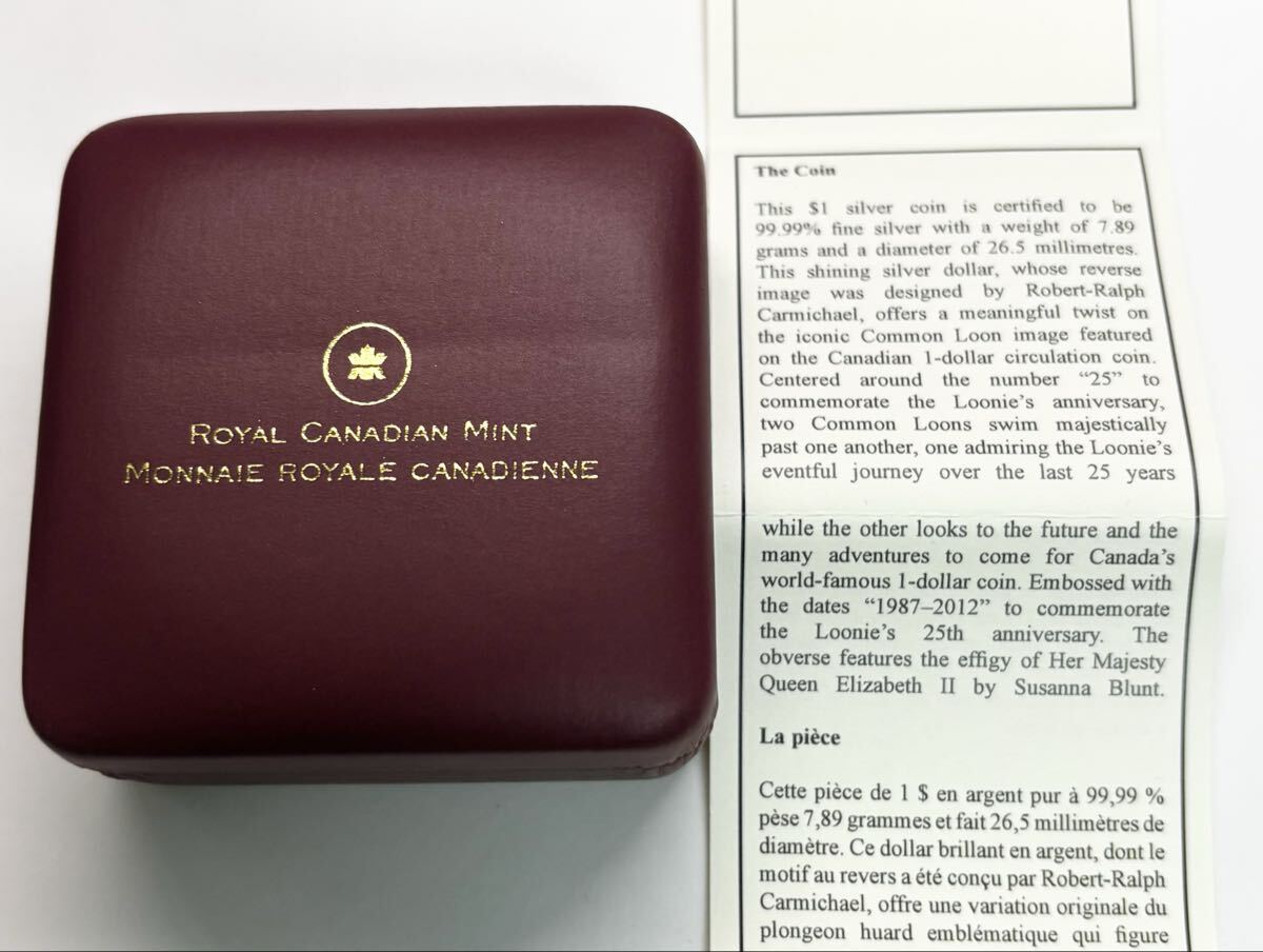 2012 カナダ 1ドル 銀貨 ルーニー 25 周年記念 Canada $1 Fine Silver Coin 25th Anniversary of the Loonie シルバー コイン