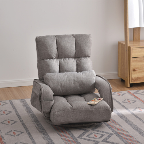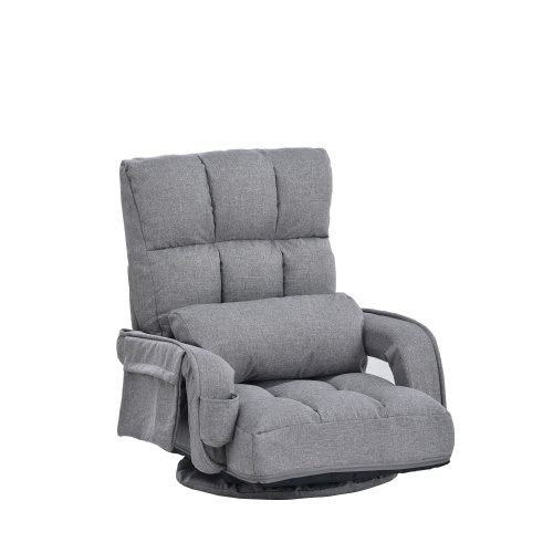 回転式座椅子 肘掛け ハイバック 座いす リクライニング 1人掛けソファー フロア ソファー リラックスチェア チェアー いす ライトグレ