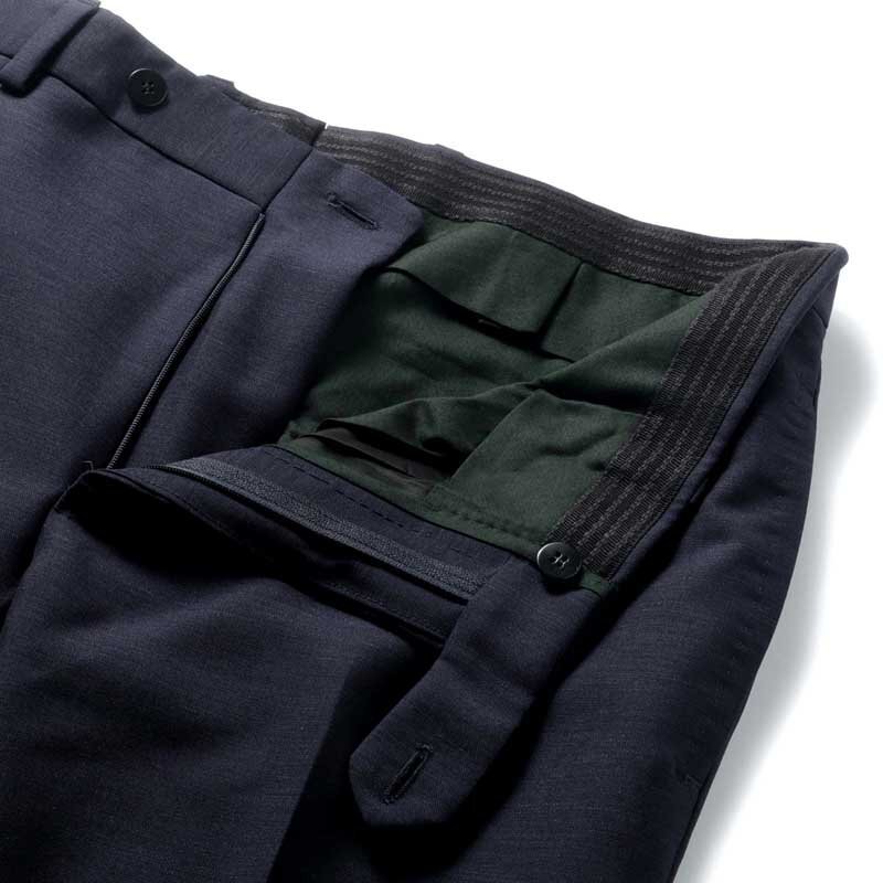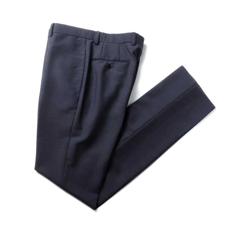 ・パンツは、クラシックながらも若々しいスーツスタイルが楽しめる、スッキリとしたスリムテーパードシルエット。誰しもが美脚が叶うスリムシルエットながら、安心感のある股上&細すぎないワタリで、窮屈さを感じさせない穿き心地。