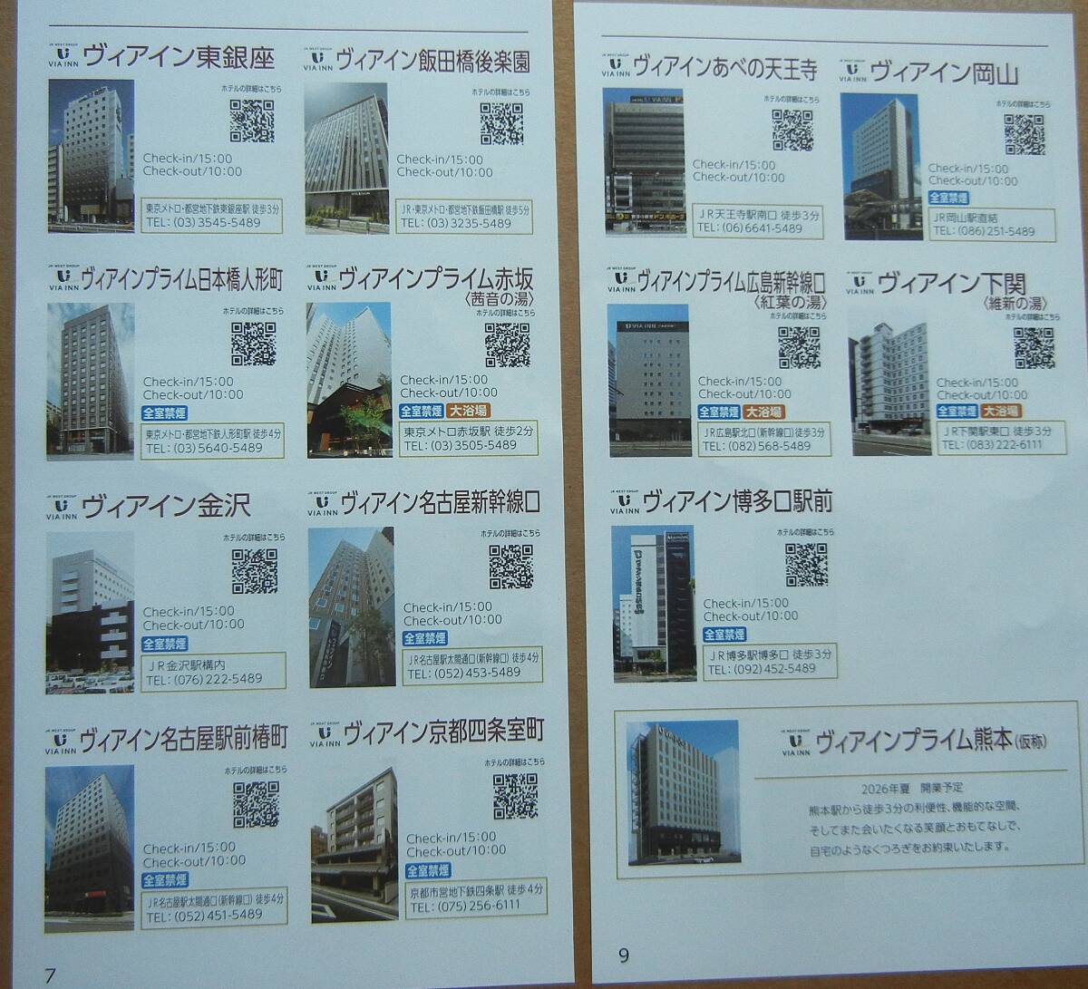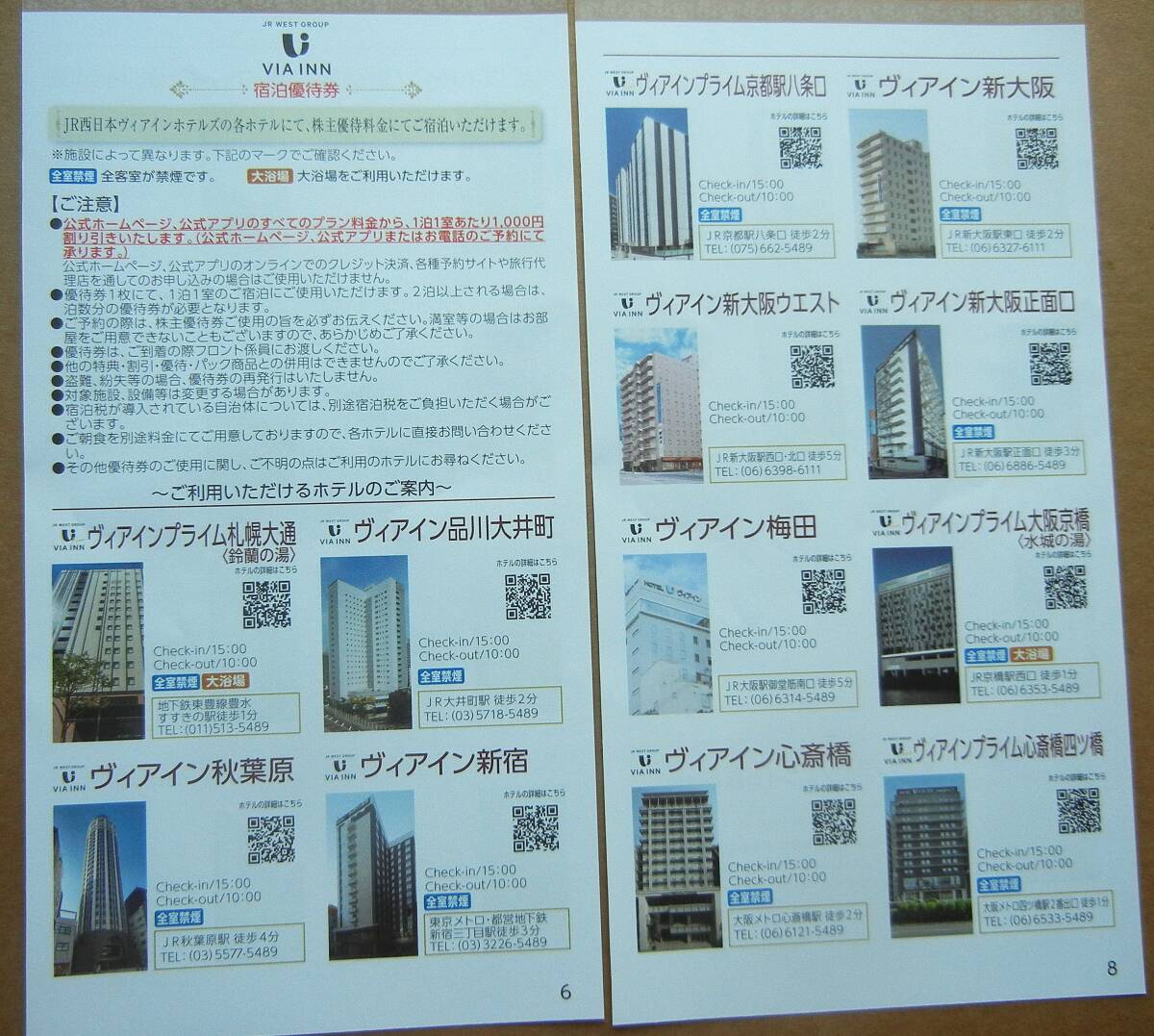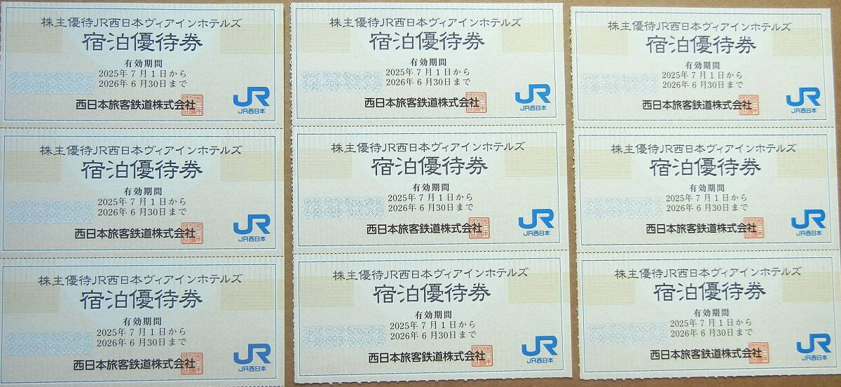 JR西日本ヴィアインホテルズ 宿泊優待券 9枚セットです。