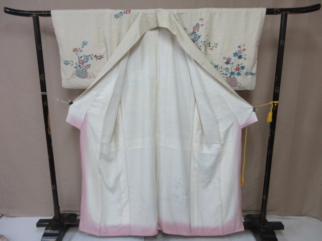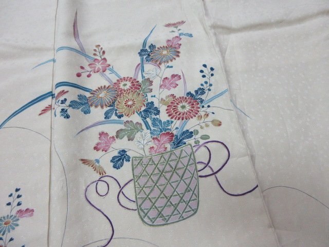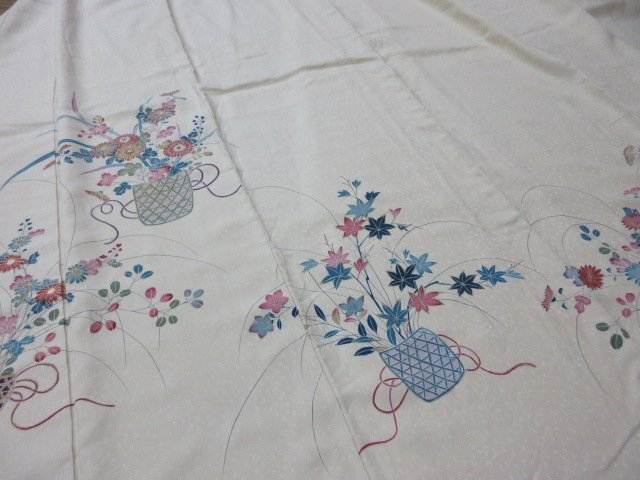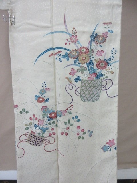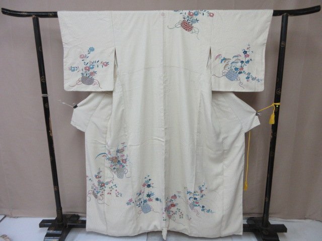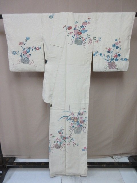| 商品名 | 1円 良品 訪問着 正絹 着物 縮緬 式典 和装 和服 竹かご 枝花 草花 高級 袷 身丈149cm 裄63cm【夢職】★ |