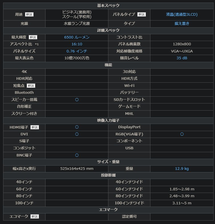 EPSON/EB-G7000W/ビジネスプロジェクター ④