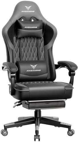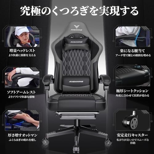 RXGAMING ゲーミングチェア オフィスチェア イス 椅子 テレワーク 疲れない 幅広座面 デスクチェア オットマン付き ゲーム用チェア145°リクライニング パソコンチェア 座り心地よい テレワーク 収納便利