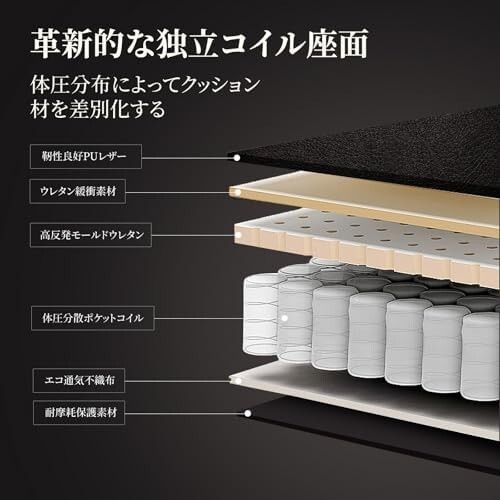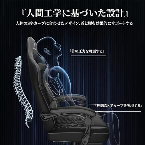 【人間工学設計&高品質素材を厳選】 ゲーミングチェアはS字形の人間工学構造設計を採用しており、首や腰のサポートを重点的に考慮しています。この設計により、体の自然なカーブに沿ったサポートを提供し、長時間座っていても快適さを実感できます。さらに、座面の形状や角度が適切に設計されており、姿勢をサポートし、腰への負担を軽減します。当社のゲーミングチェアは、高品質スポンジと通気性の良いレザー素材を使用しています。高品質スポンジは体にフィットし、長時間座っていても形状を保ちます。また、通気性の良いレザー素材は、暑い季節でも蒸れにくく、快適な座り心地を提供します。素材の品質にこだわることで、耐久性や快適性を追求しています。