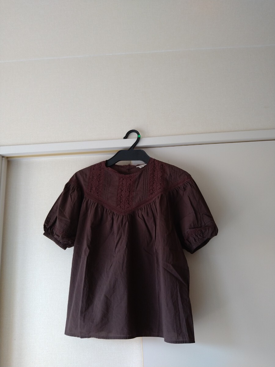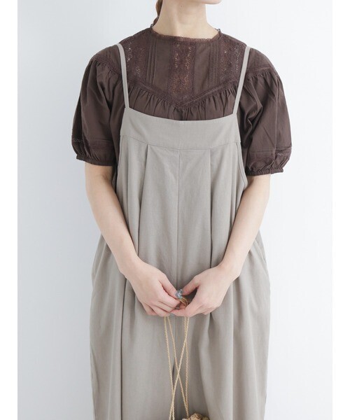 ほんのりと素肌を覗かせる、ヨーク部分の切替えレースがフェミニンなブラウス。
