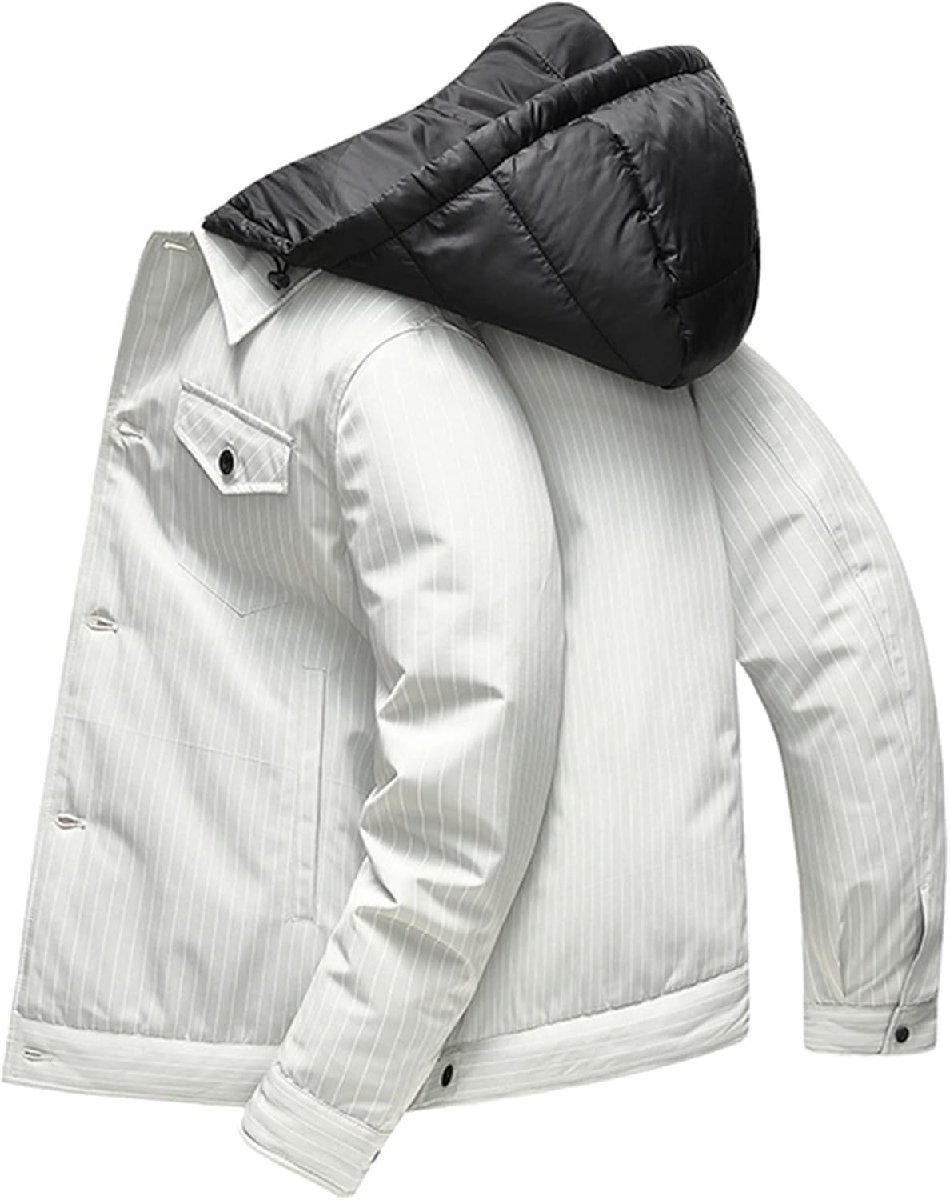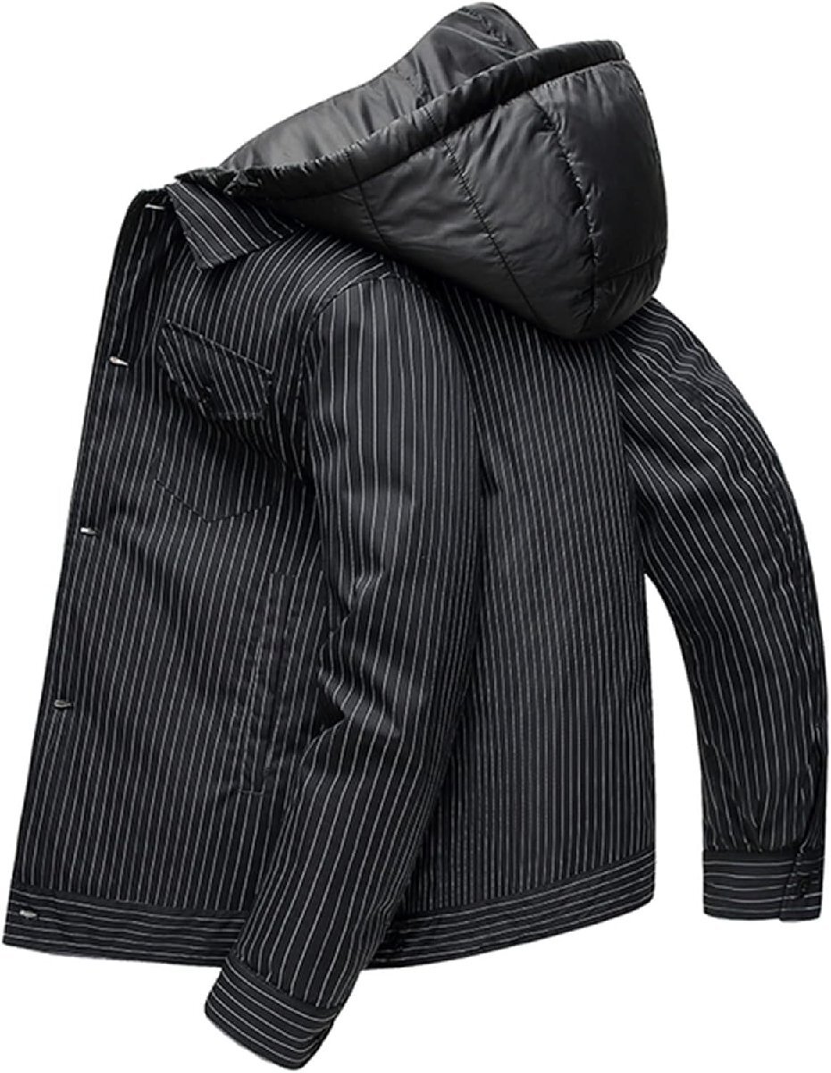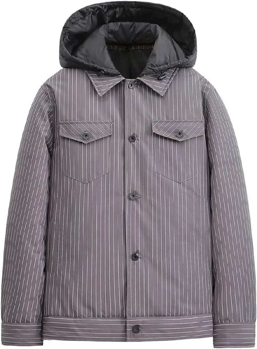 メンズダウンコットンジャケット 冬のフード付きダウン ジャケット男性ストライプ ダウン アウターウェア暖かいコート 冬用ジャケット