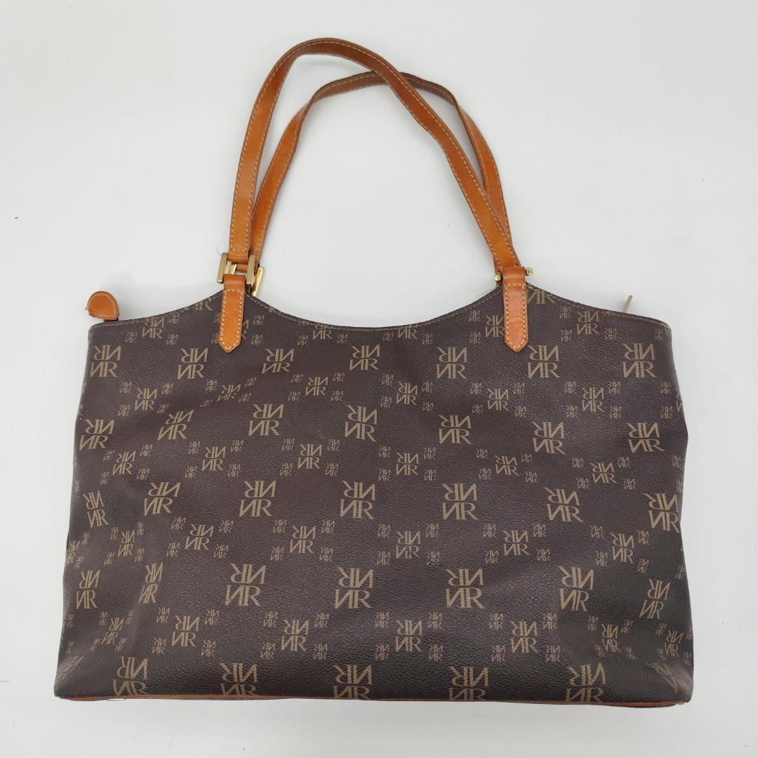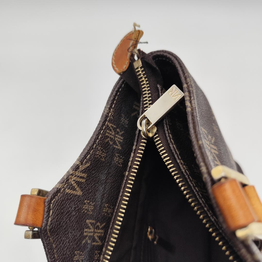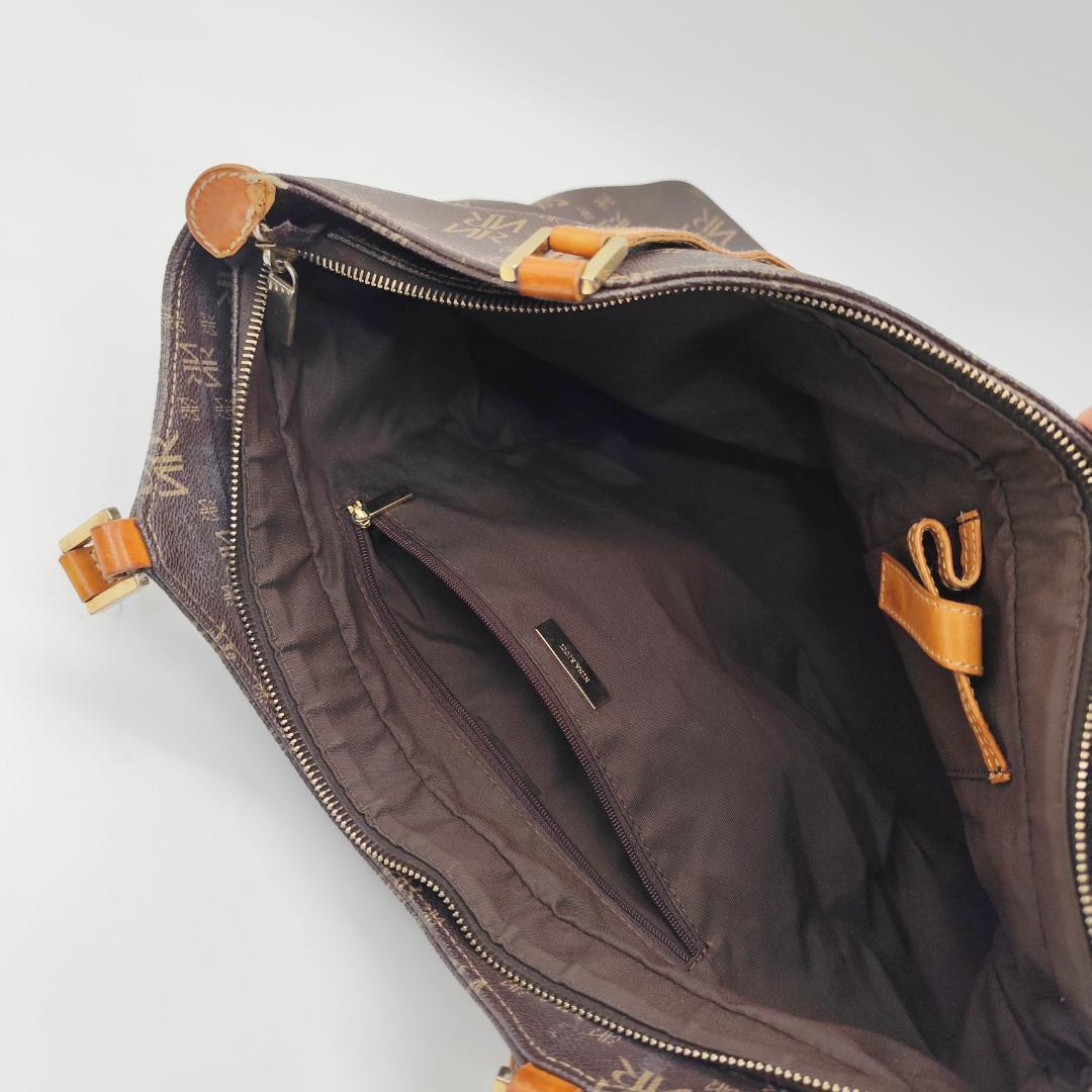 茶色(ブラウン)× ベージュ系ロゴ総柄 × ゴールド金具