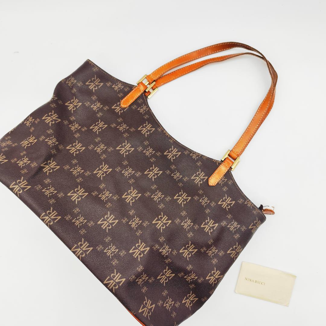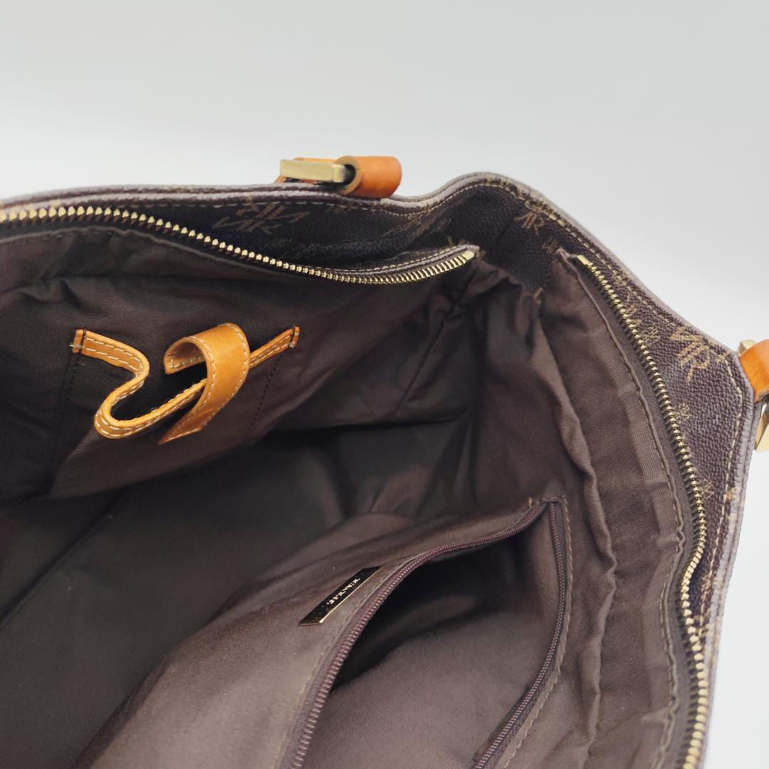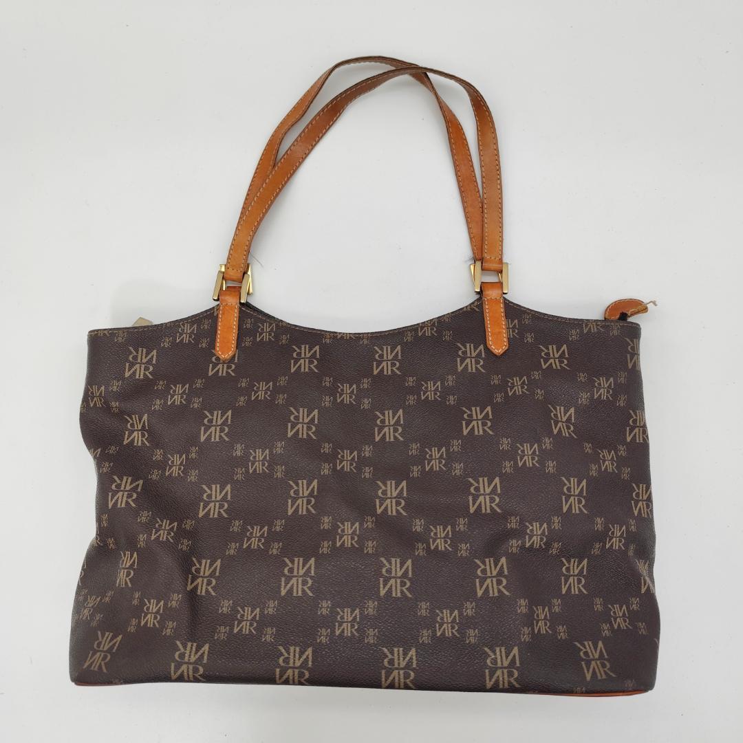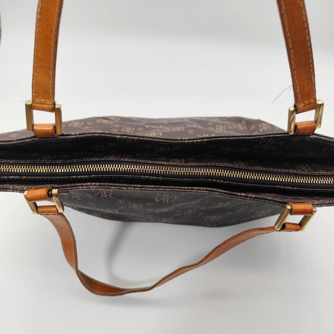 茶色(ブラウン)× ベージュ系ロゴ総柄 × ゴールド金具
