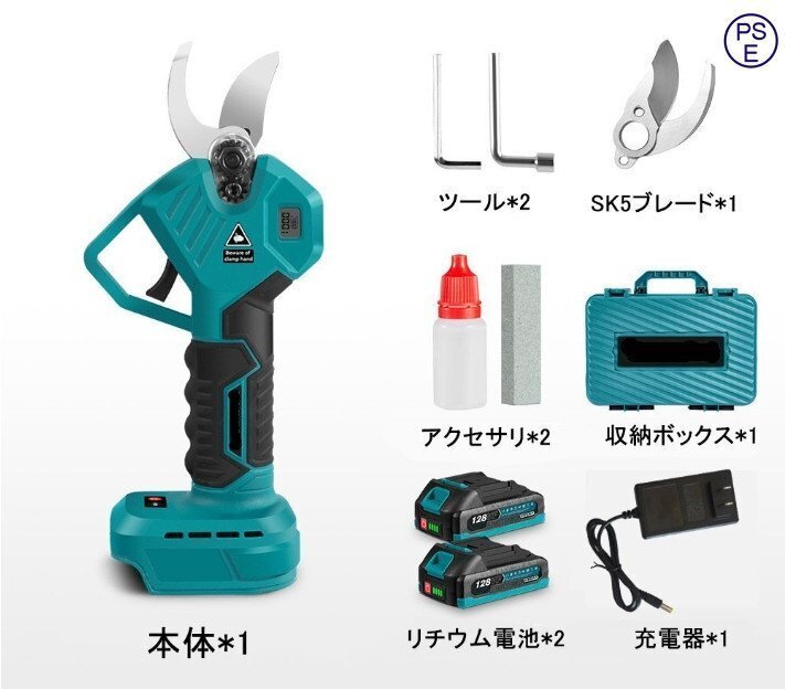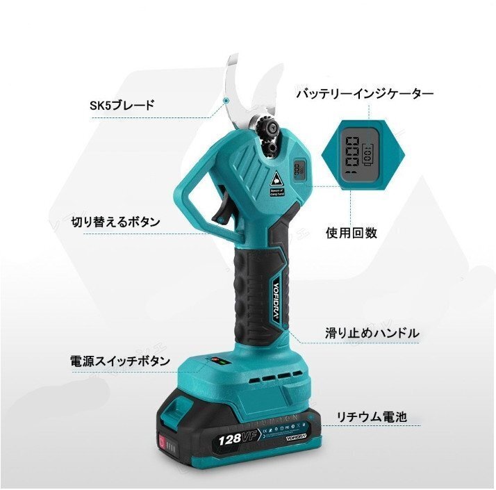 新型電動ハサミ 充電式 ブラシレスモーター採用 開き口30mm マキタ18Vバッテリーと互換性あり庭木/枝切り/果樹用 電池2個 (A150)