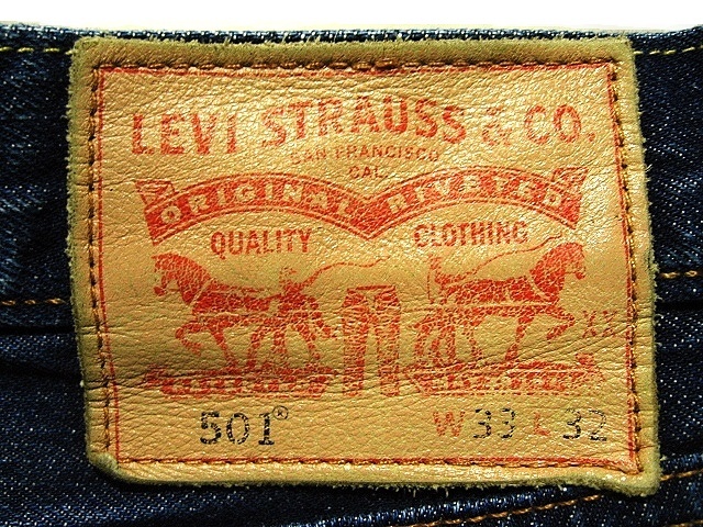 501 革パッチ w33 (88x80位) 濃淡 ヒゲ タテ落ち アタリ抜群 チェーンステッチ