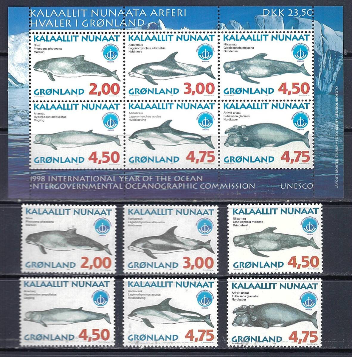 グリーンランド 1998年 #329-34.334a(NH) クジラ / 国際海洋年 / Cat.Val.$20.00-