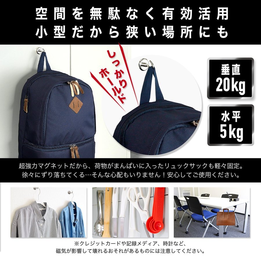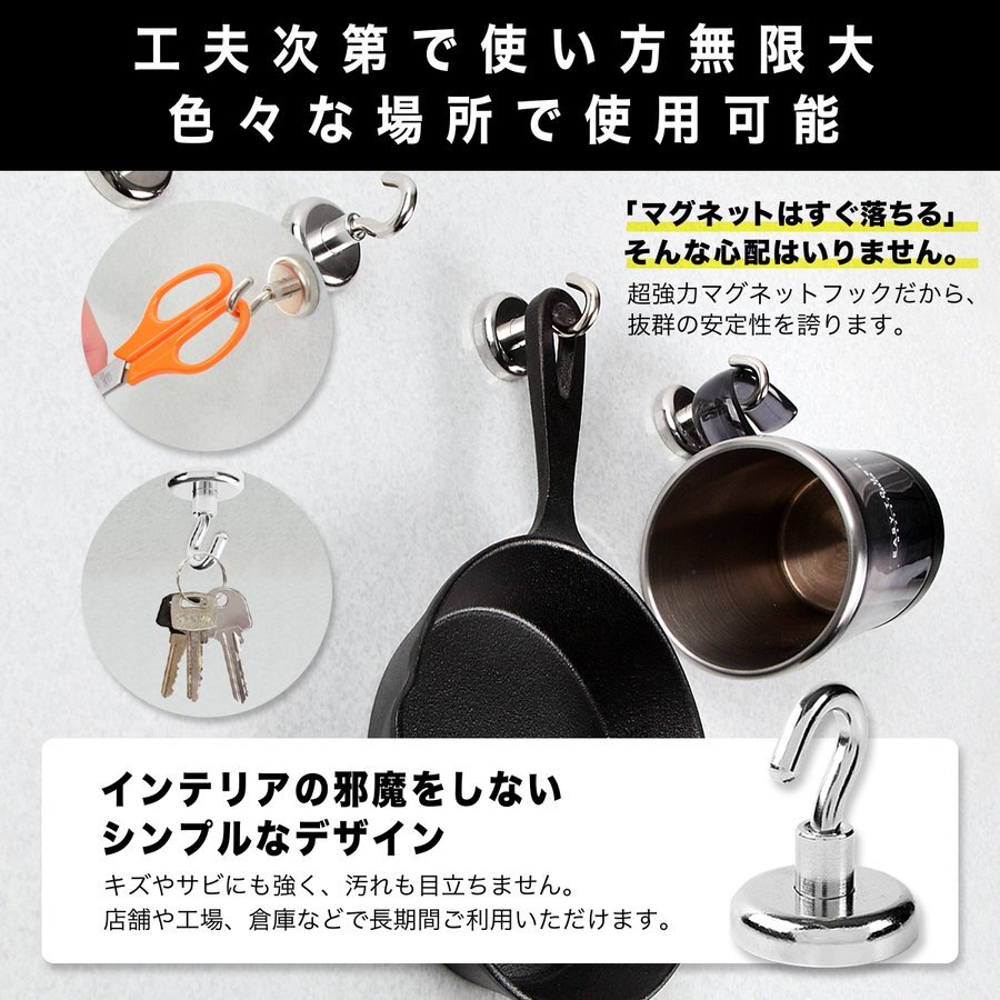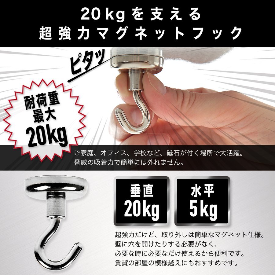 20kgの荷重を支える超強力マグネットフック、8個セットで便利な収納を実現。