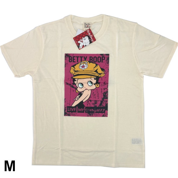 即決新品 ベティ 半袖Tシャツ 男女兼用 メンズサイズ M アイボリー Betty Boop 送料無料 335B柄