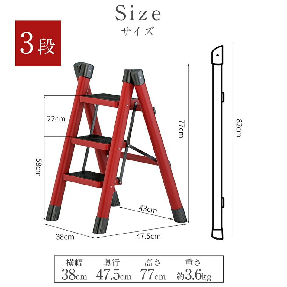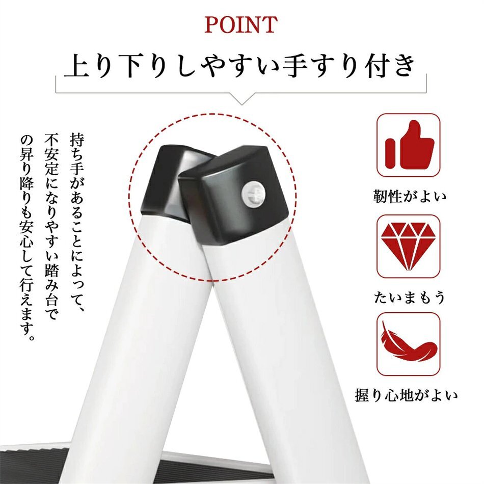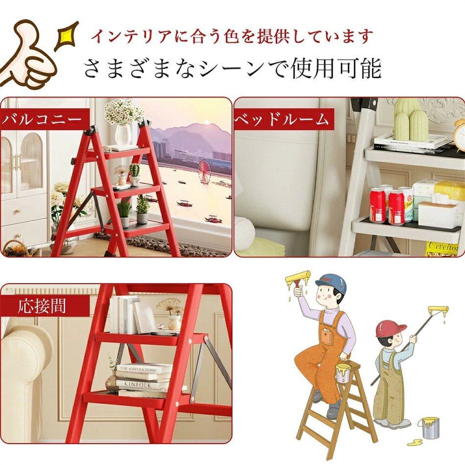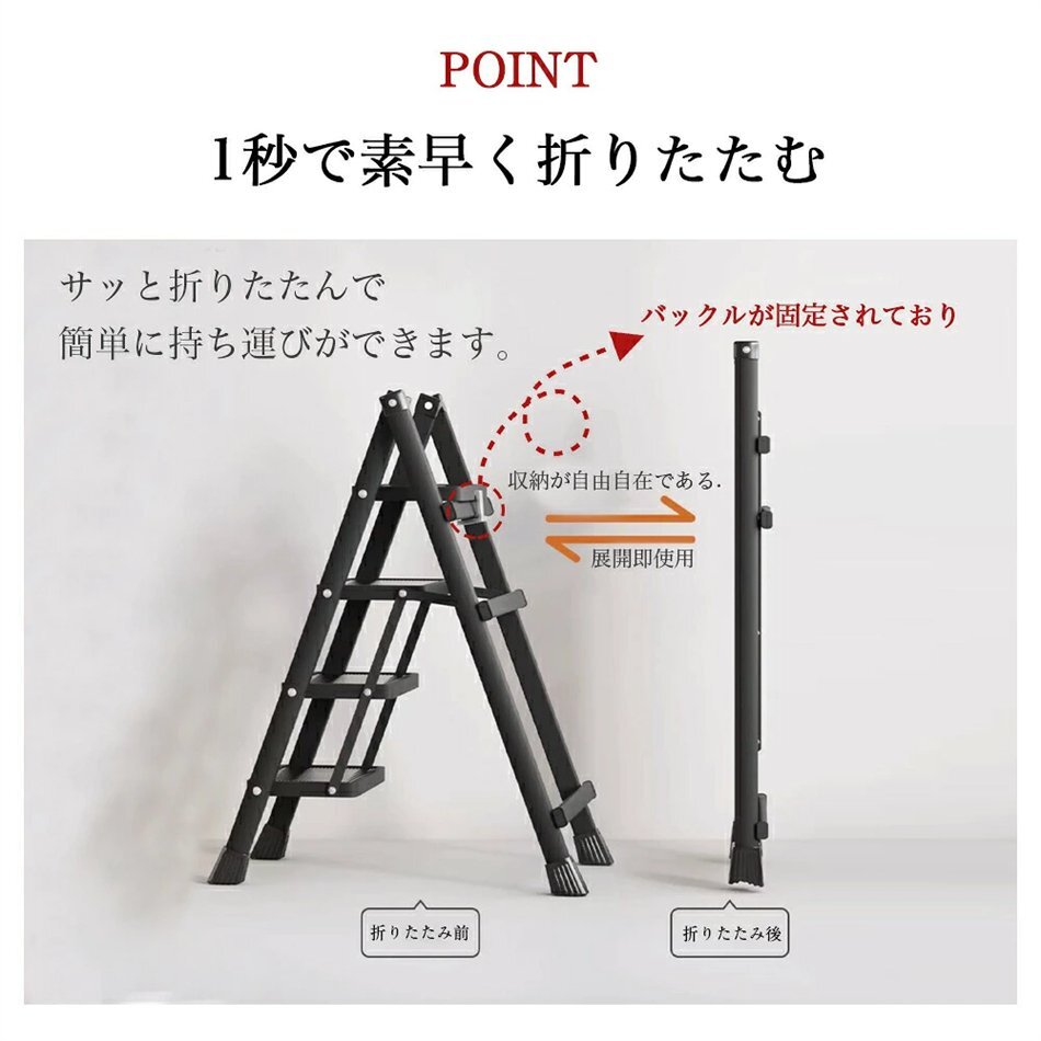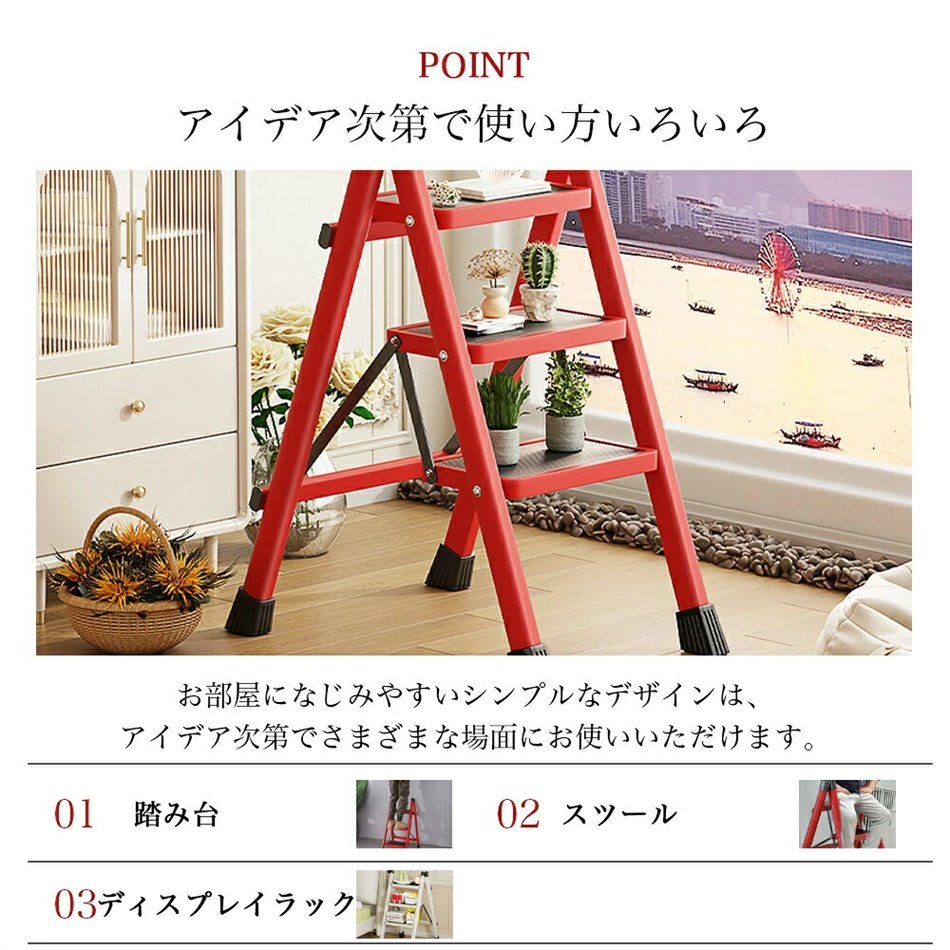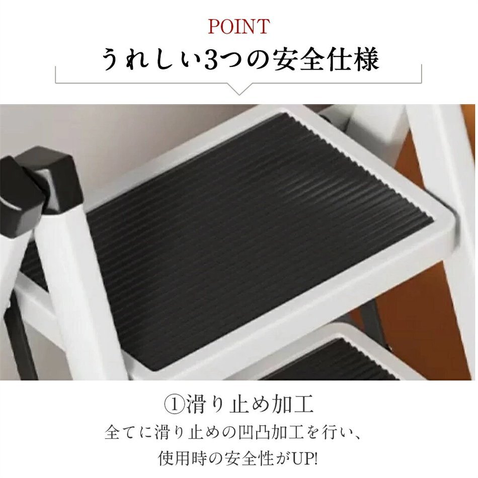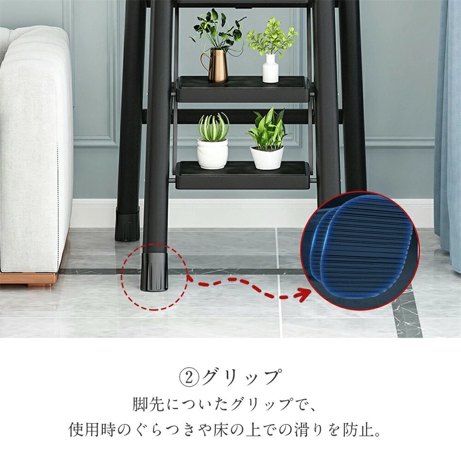 安全性にも配慮し、各ステップには滑り止め加工が施されており、安定した足場を提供します。さらに、しっかりとした構造で耐久性も抜群。はしごや梯子としても使用可能で、高い場所へのアクセスが簡単になります。