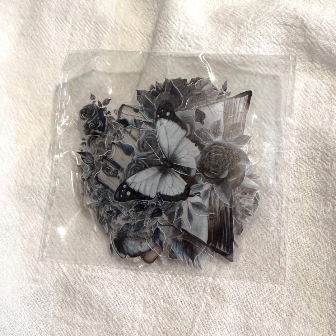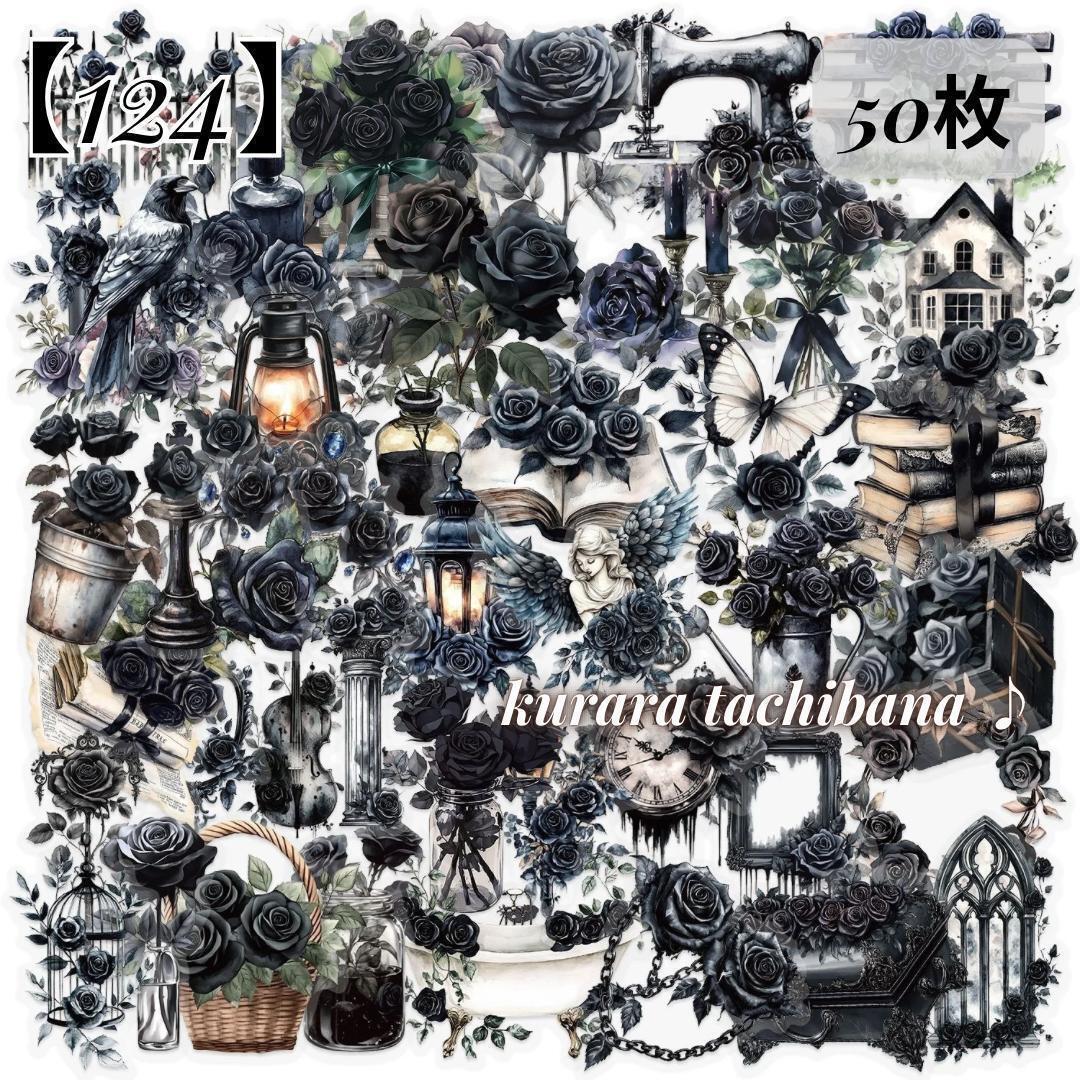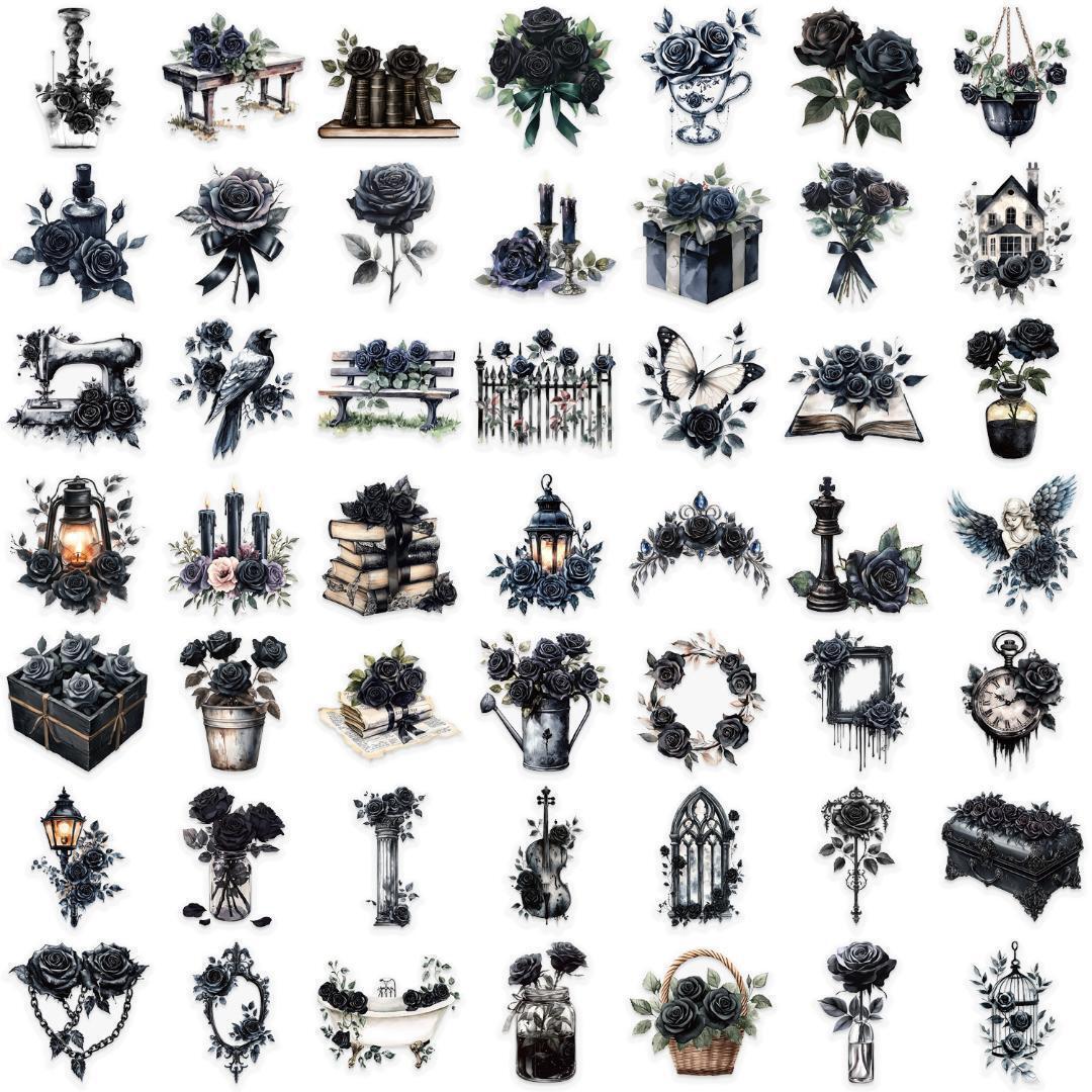 ゴシックでアンティークな黒薔薇デザインのPET素材のシールです♪