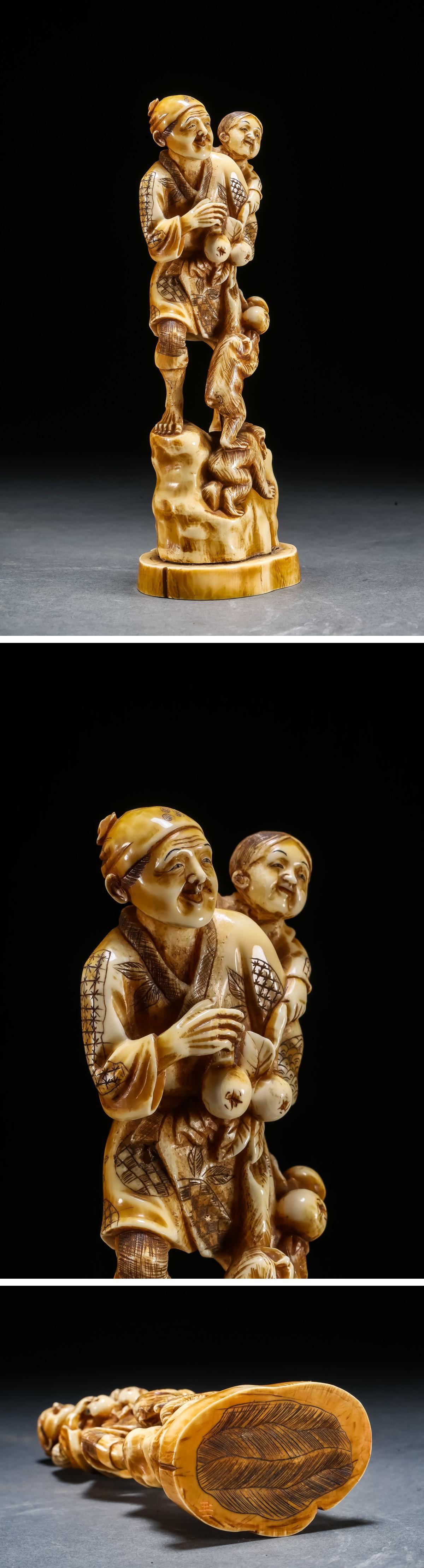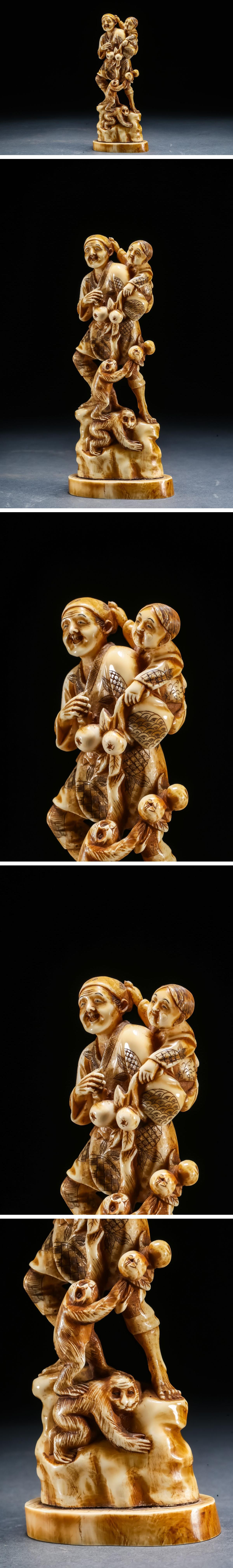 【雲錦】某有名オークション買入 時代物 特殊白材「玉一」在銘 唐人唐子彫り物 豪華芯料使用 骨董品 古美術Z-7S2