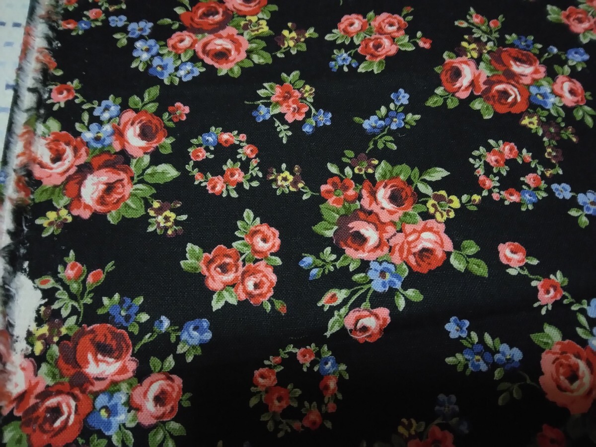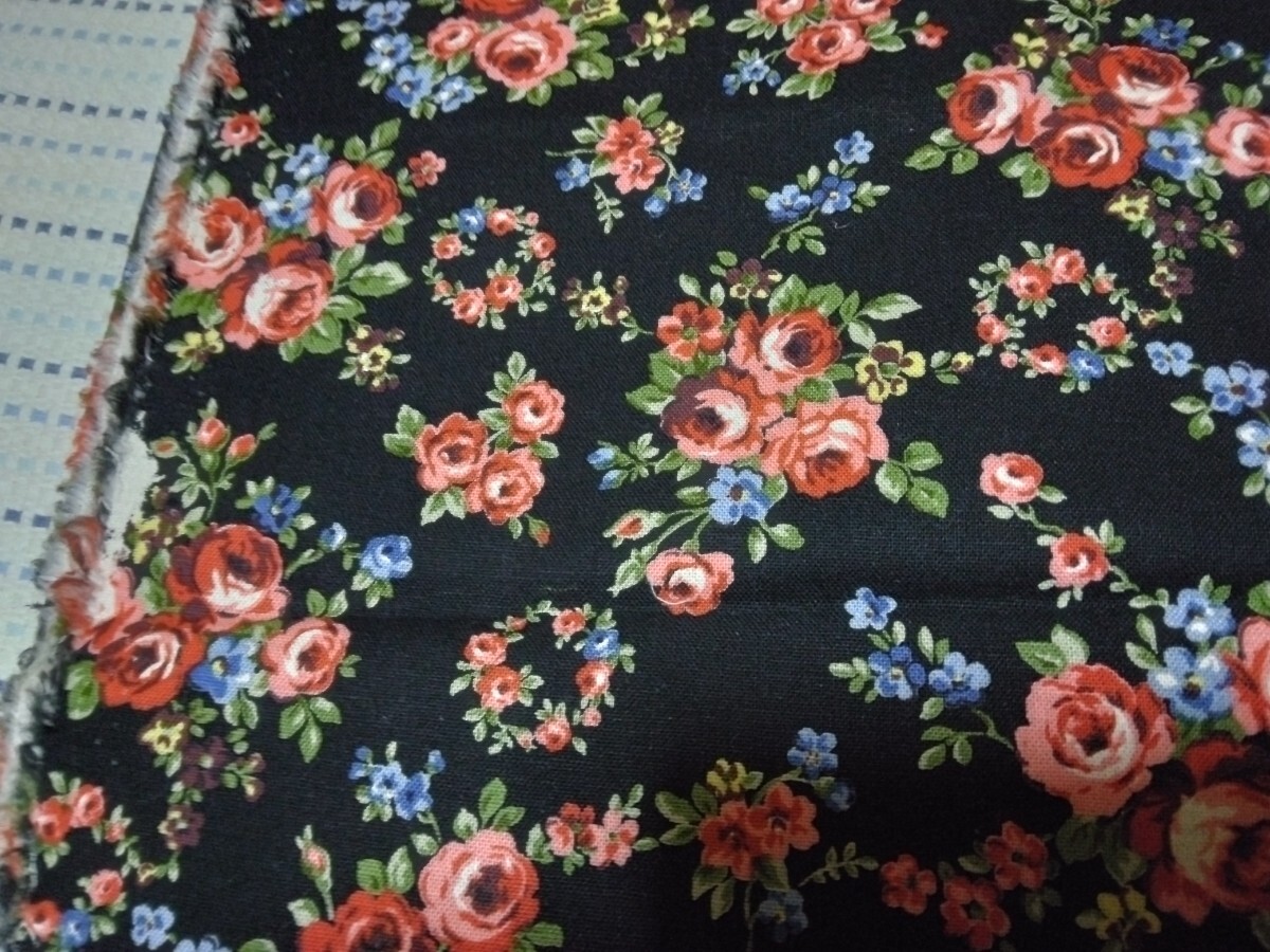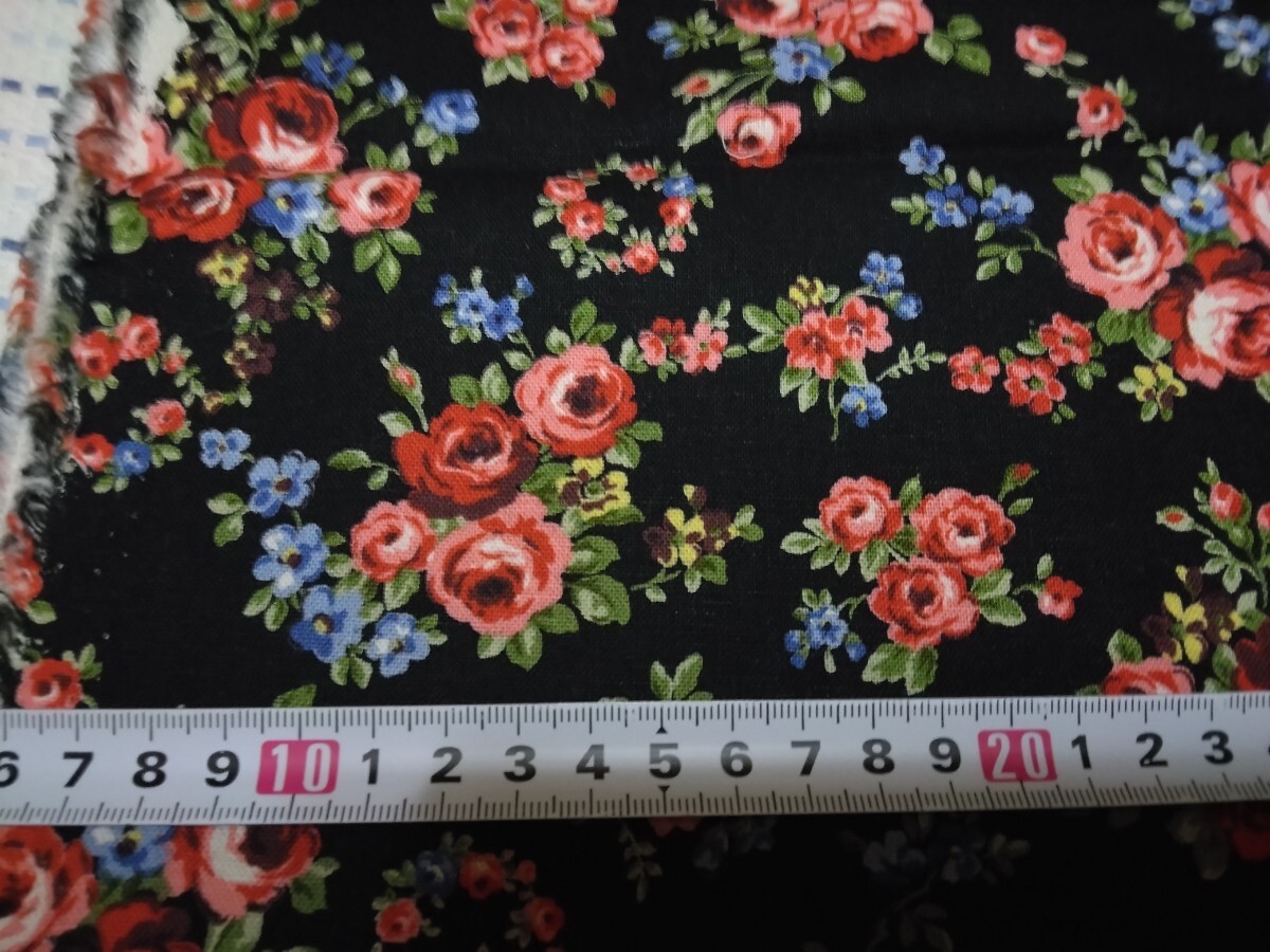 バラやお花柄の綿麻生地です。生地巾110×53センチの現品限りです。