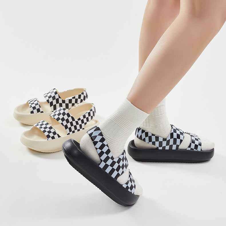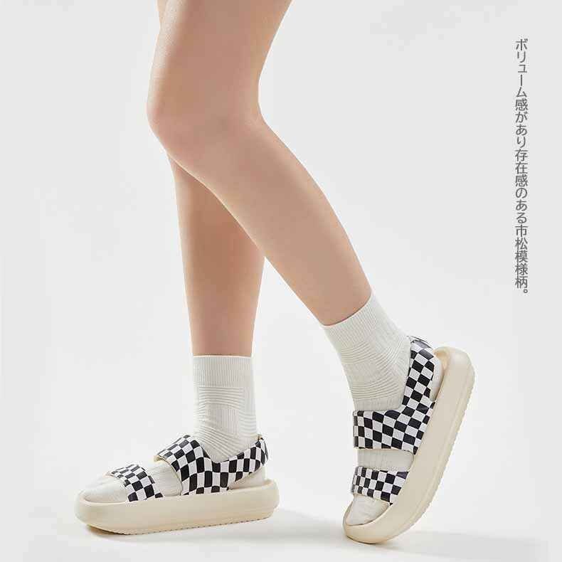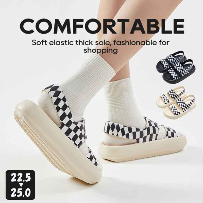 ・丸みのあるフォルムが可愛らしいフラット厚底サンダル。