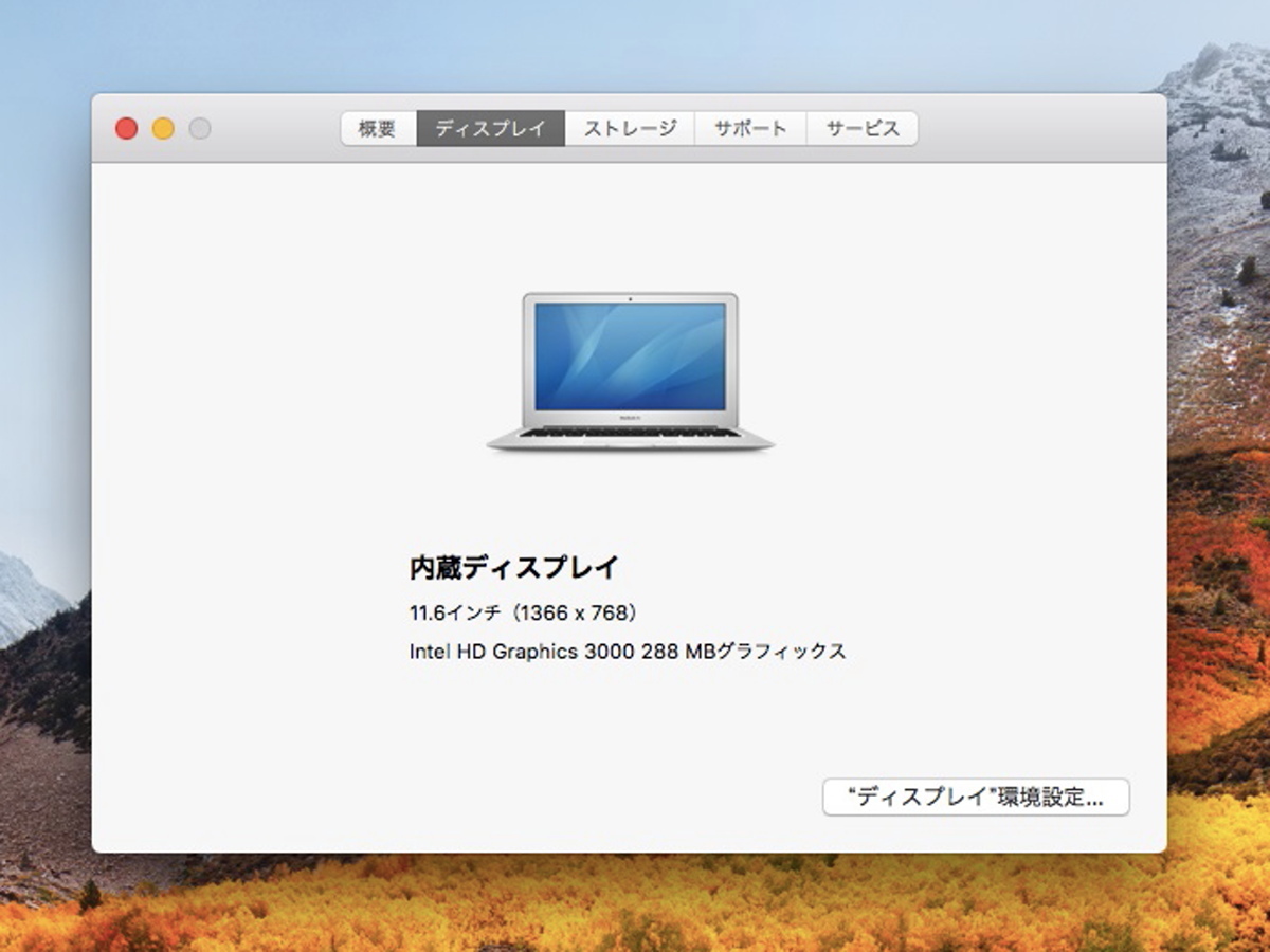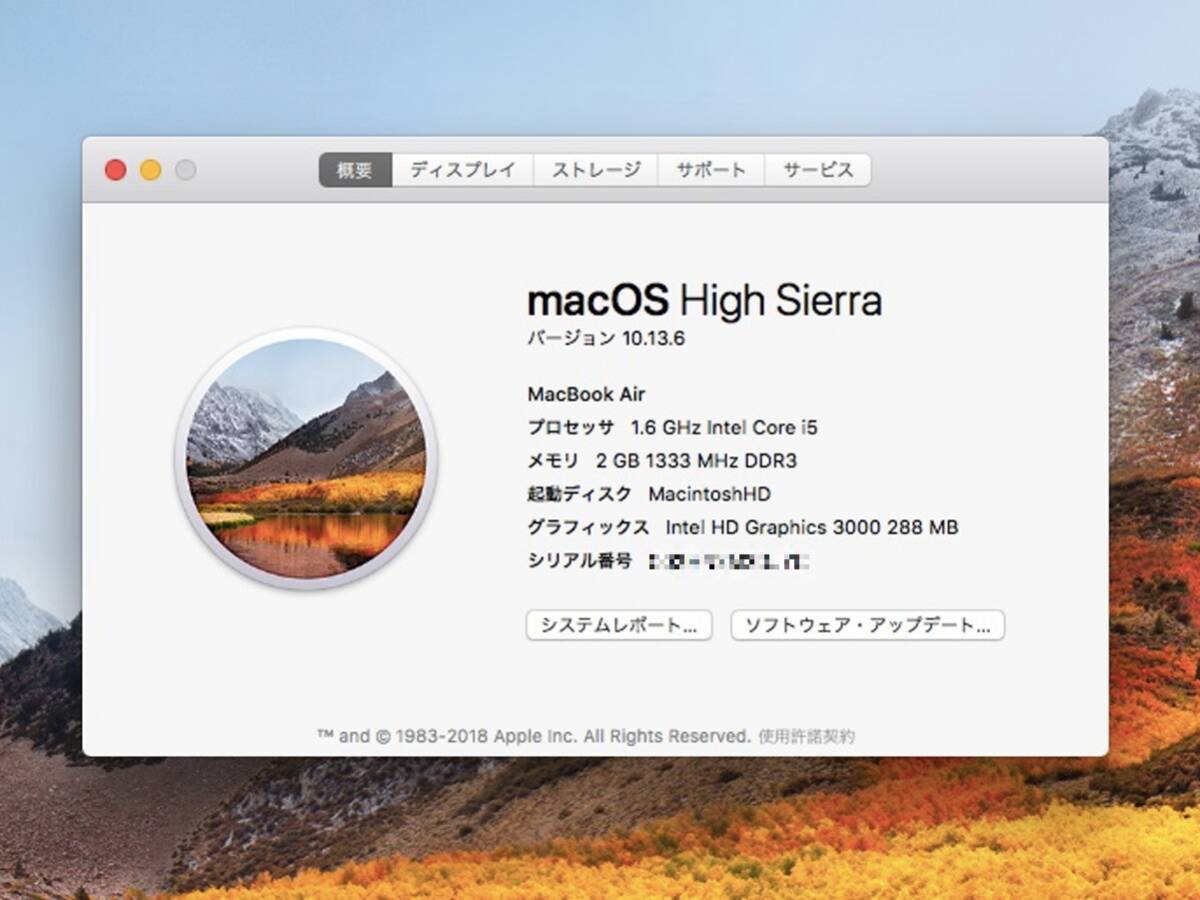 | Apple MacBook Air A1370 (11-inch,Mid2011)/Core i5 1.6GHz/2GBメモリ/SSD128GB/macOS High Sierra 10.13.6/バッテリー正常 #1003 | ||