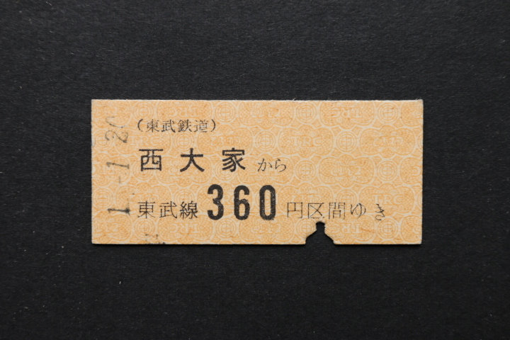 東武鉄道 乗車券 西大家から 360円区間ゆき