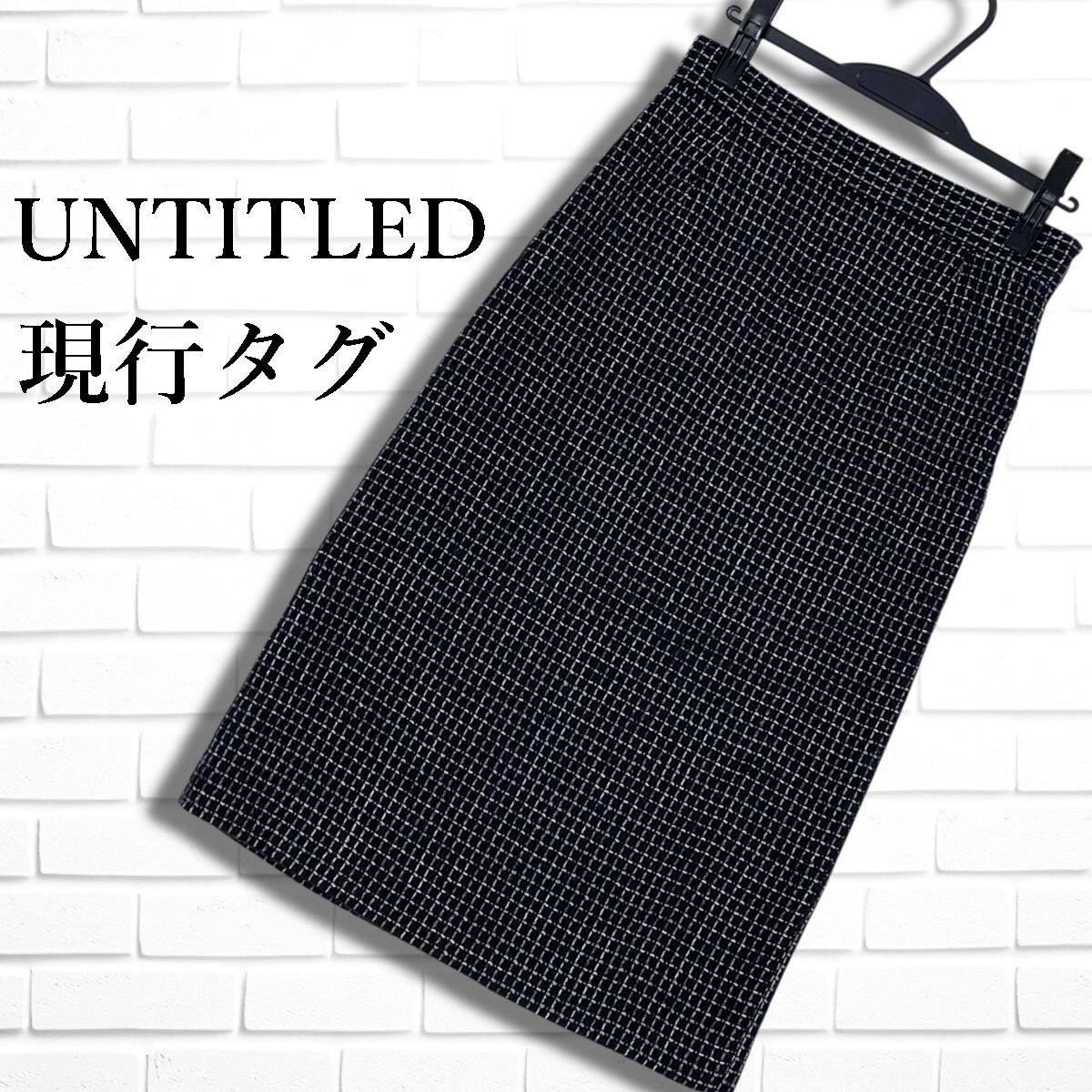 ◆美品 現行タグ◆ UNTITLED アンタイトル イタリア生地 ツイード ウール ブレンド チェック ロング スカート 黒 ブラック レディース 2 M ◆日本製 送料無料◆ 0185J◇