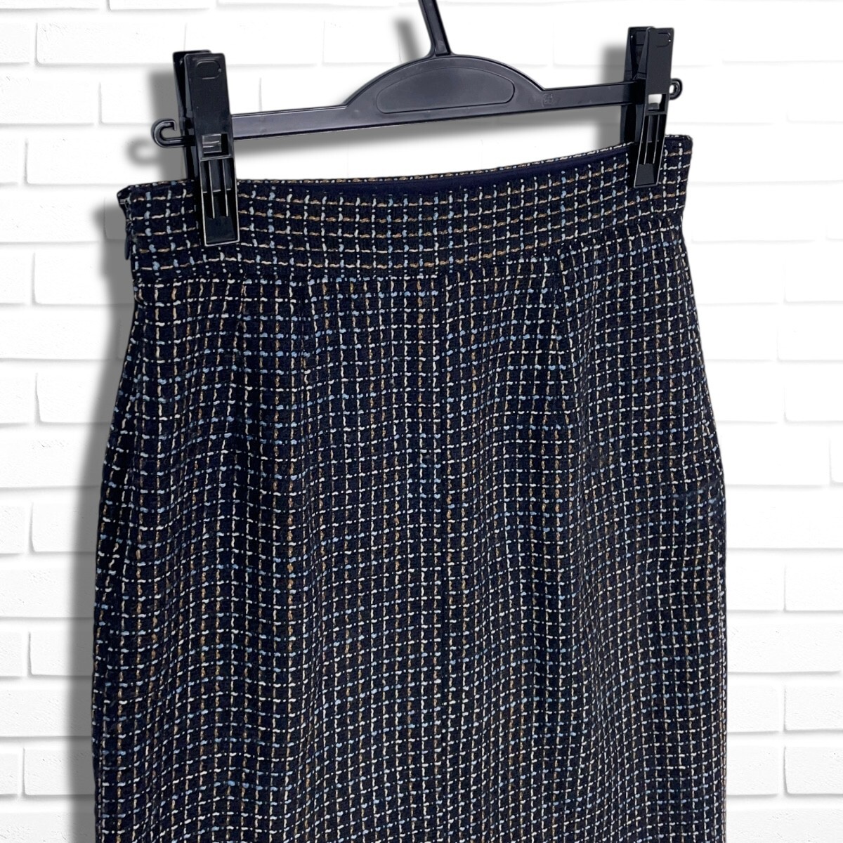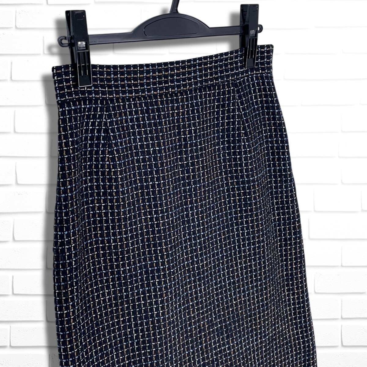 ◆美品 現行タグ◆ UNTITLED アンタイトル イタリア生地 ツイード ウール ブレンド チェック ロング スカート 黒 レディース 2 M 0185J◇