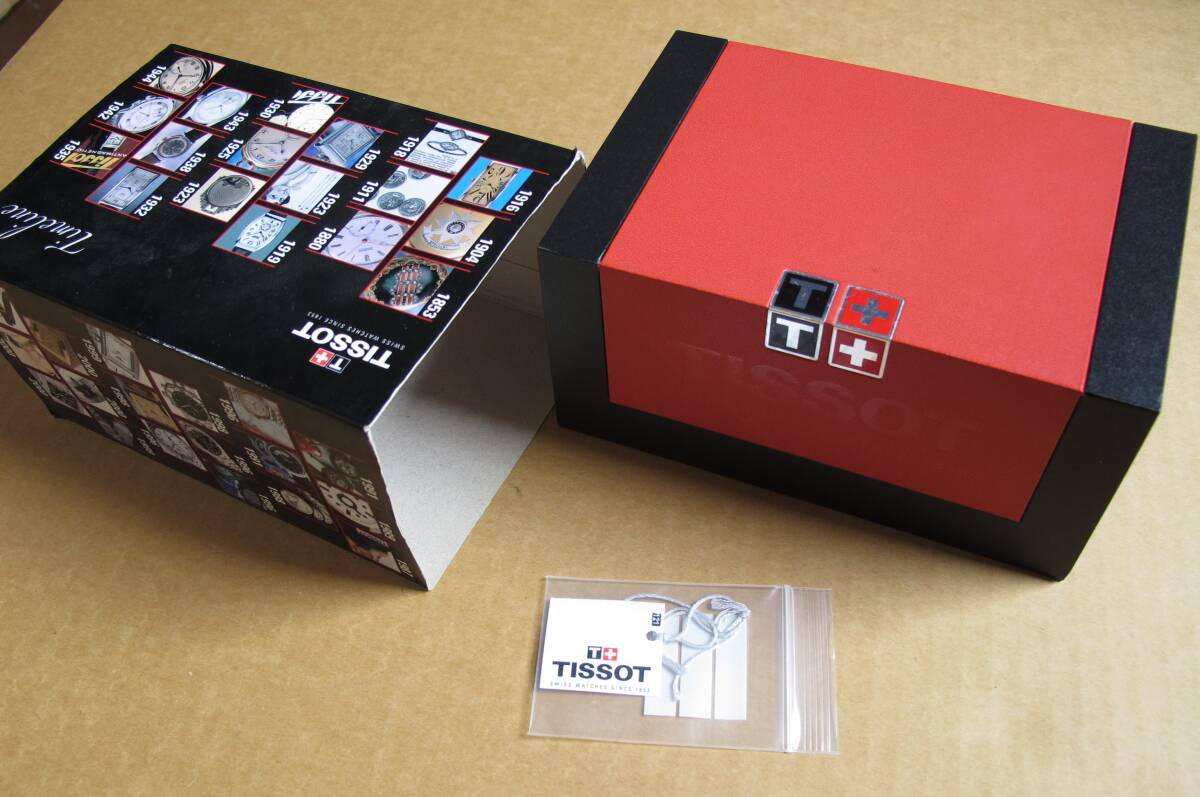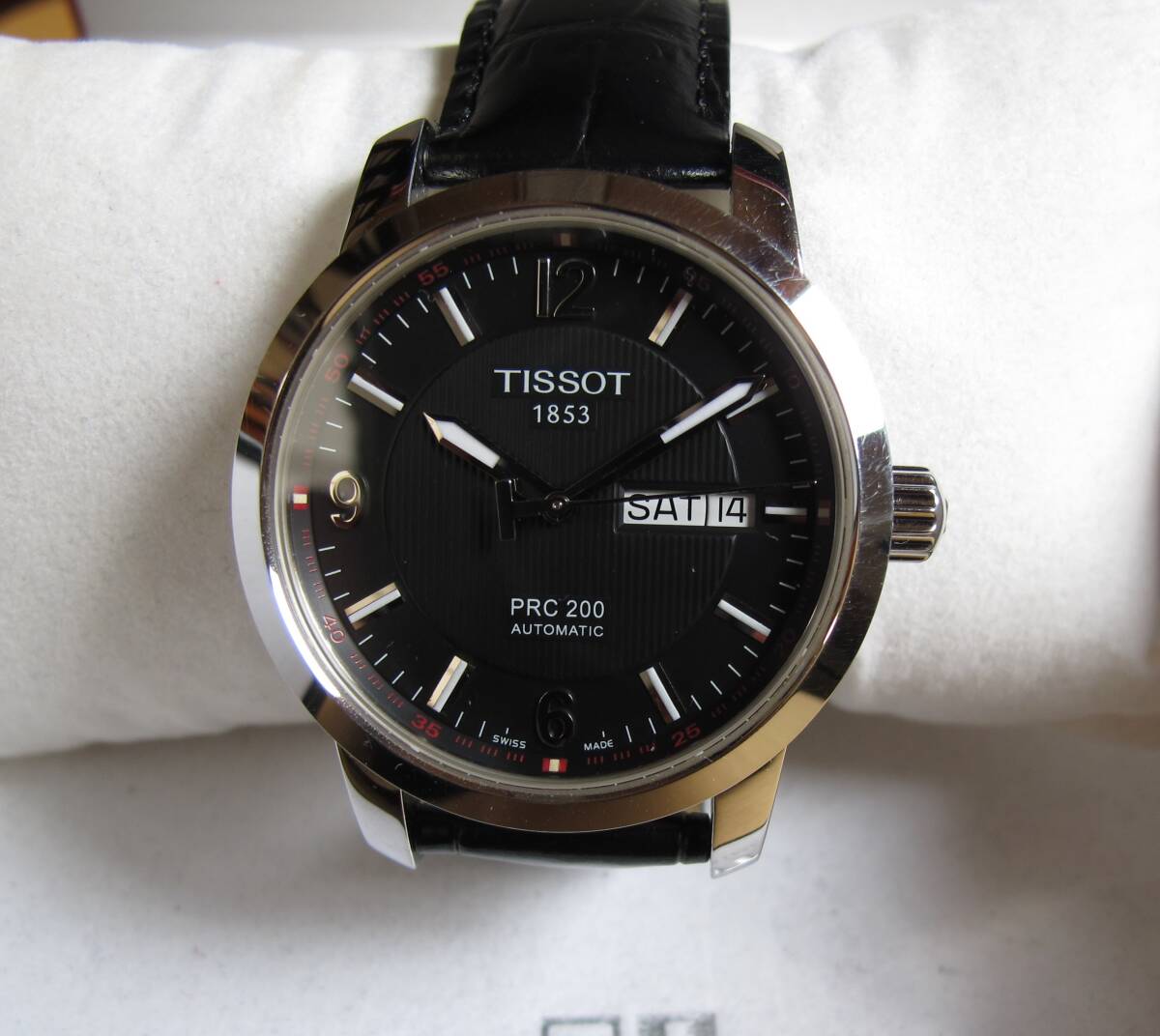 興味があって中古で購入しましたが、使うことなくしまっており、今後使うこともないので出品することとしました。チソット(TISSOT) PRC200の腕時計です。風防(サファイヤガラス)はきれいです。裏ブタもスケルトンで目視では傷は確認できませんでした。天真折れなく稼働します。時間の精度は不明です。リューズで巻き上げ、時間、日にち調整はできます。ケース、ベルトは使用感は見られますが全体的にきれいです。オーバーホール歴は約5年前にしました。その時は日差5秒程度で精度はよかったです。おおよその大きさは横39㎜(リューズ含まず)、縦47㎜です。ベルトは純正ですがくたびれ感がありますが使用可能です。元箱等あります。詳しいことはわかりませんので写真を参考して下さい。このような状態でも興味のある方よろしくお願いします。なお、この商品につきましてはノークレーム・ノーリターンにてお願いします。発送はゆうパック等を考えています。