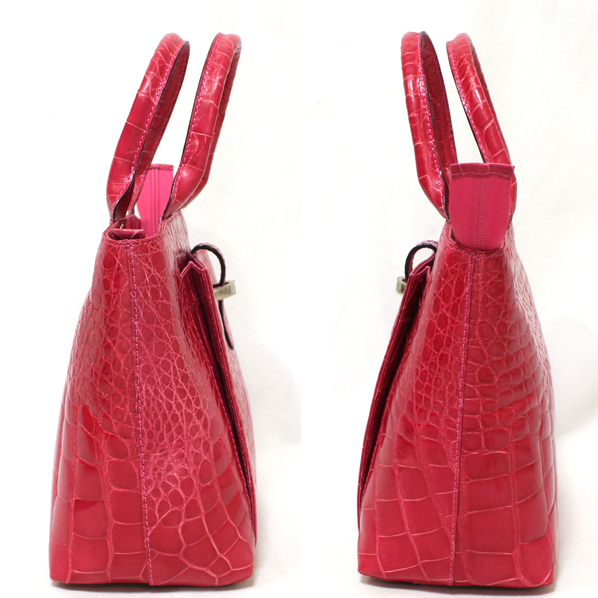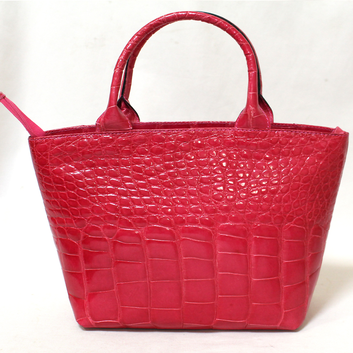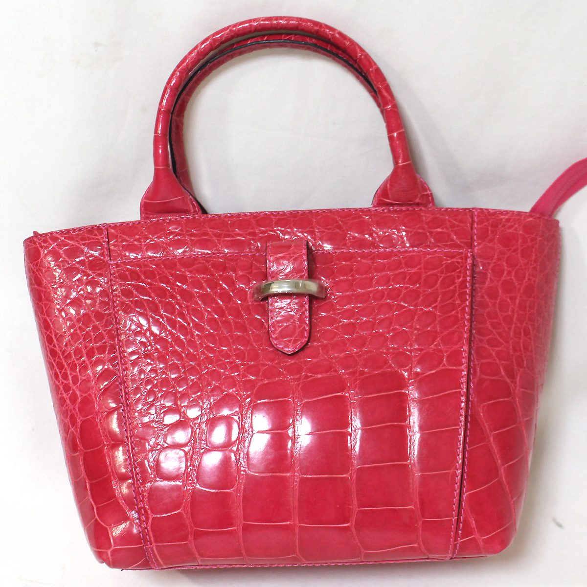 カラーは人気のピンクカラー、素材は鰐革クロコダイルになります。