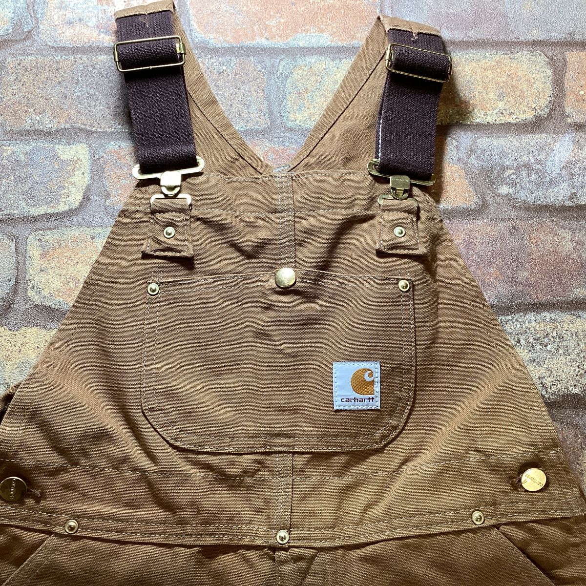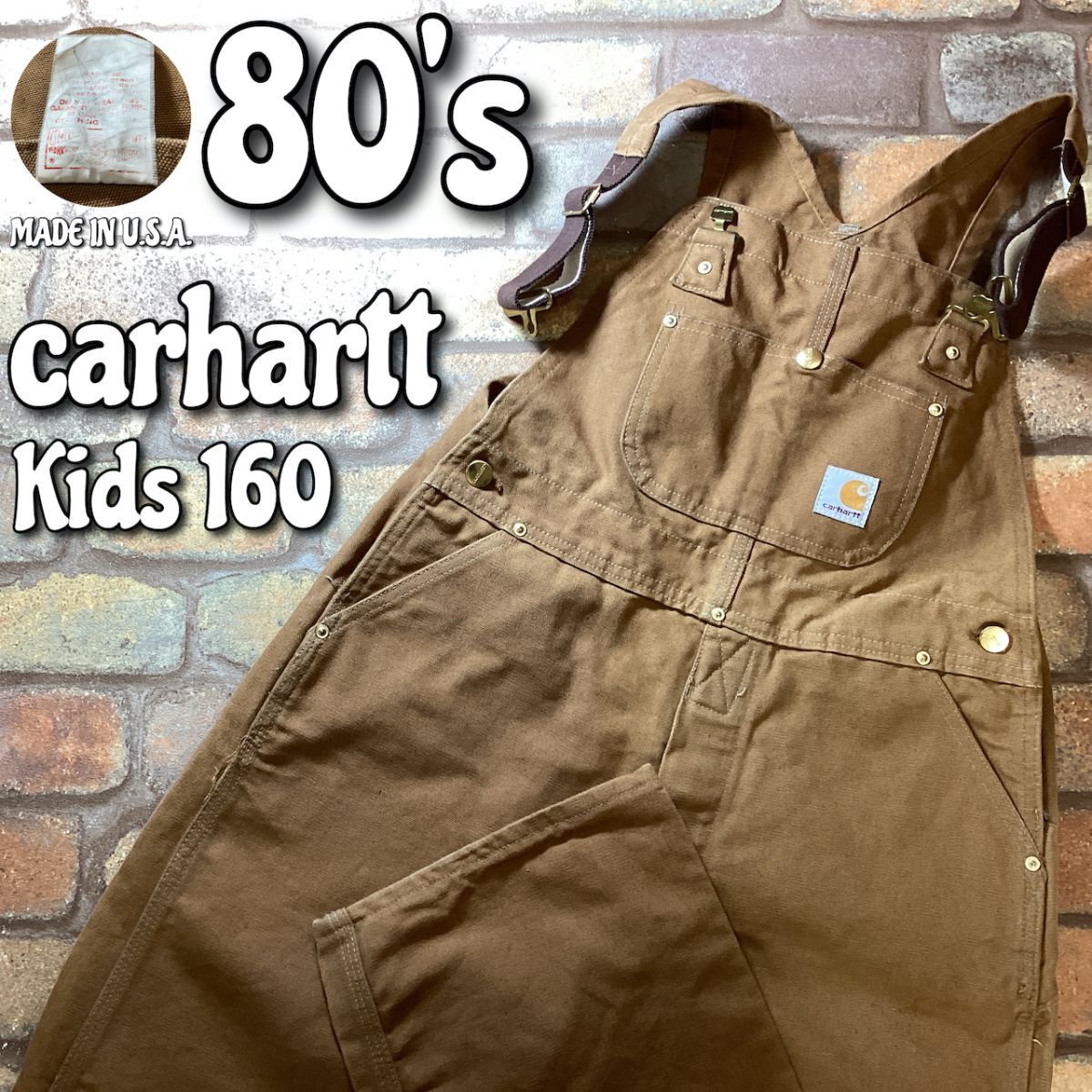 ★80s USA製★良品&正規品★【carhartt カーハート】星マーク ユニオンチケット Wニー オーバーオール【ユース 160】茶 子供服 K3-434