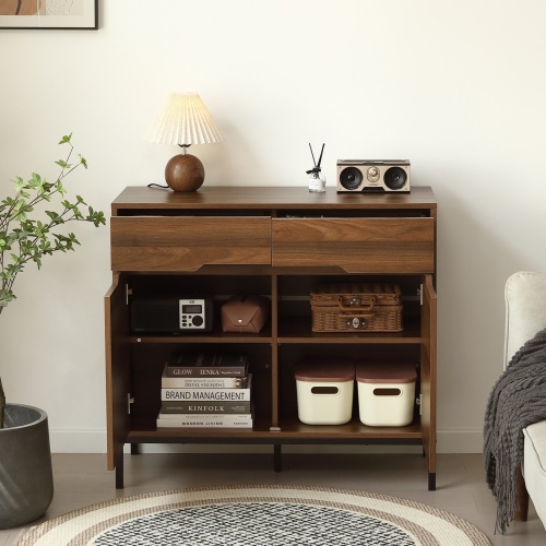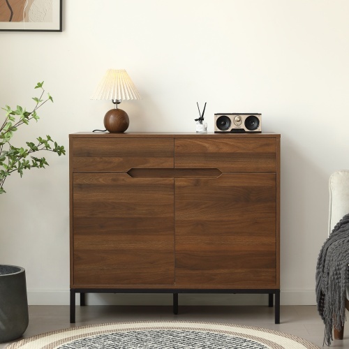 【幅90cm】キャビネット 木製 脚付き 収納棚 チェスト サイドボード リビングボード 引き出し付き 両開き 扉付きシェルフ 大容量収納
