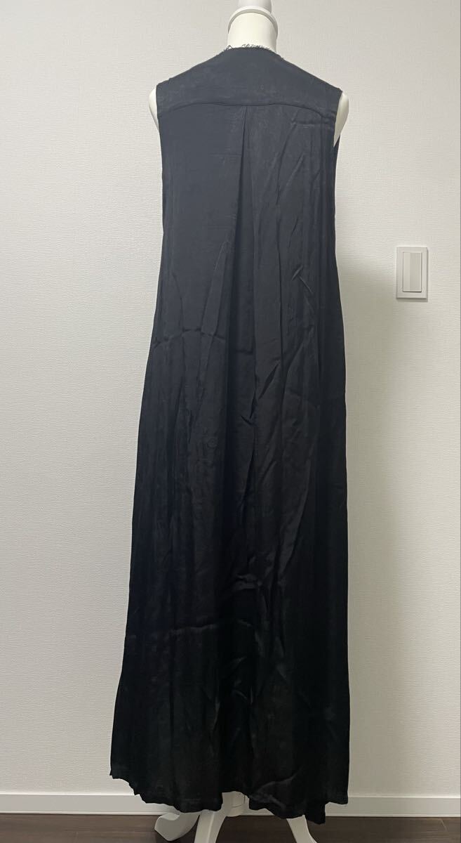 前開きのデザインでワンピースとしてもロングジレとしてもお使いいただけコーディネートの幅が広がるアイテムです。